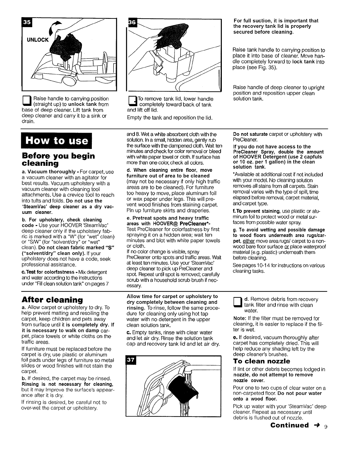 •Use only attachments recommended by The Hoover Company; others may