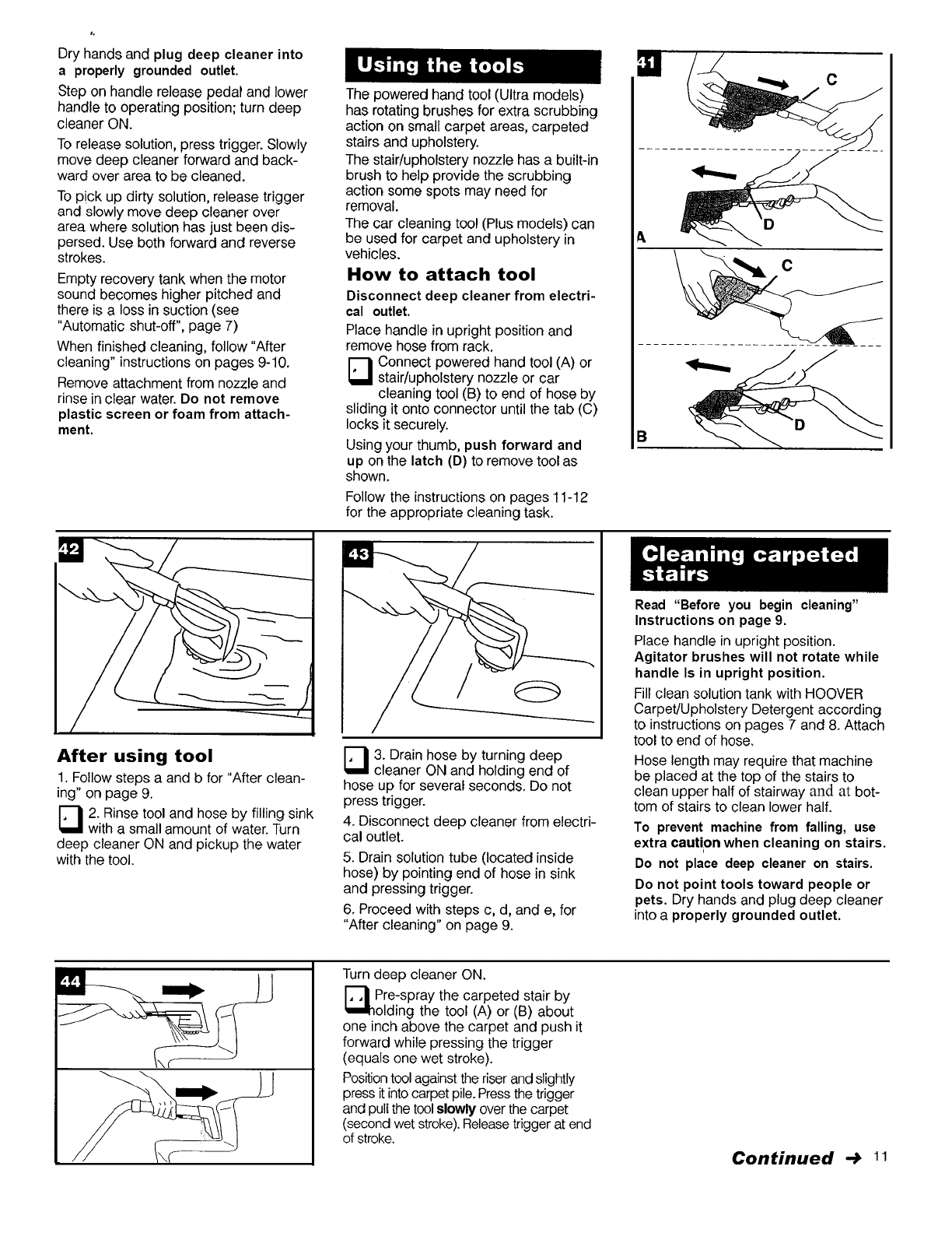 •Use extra care when cleaning on stairs. Do not place deep cleaner on stairs.