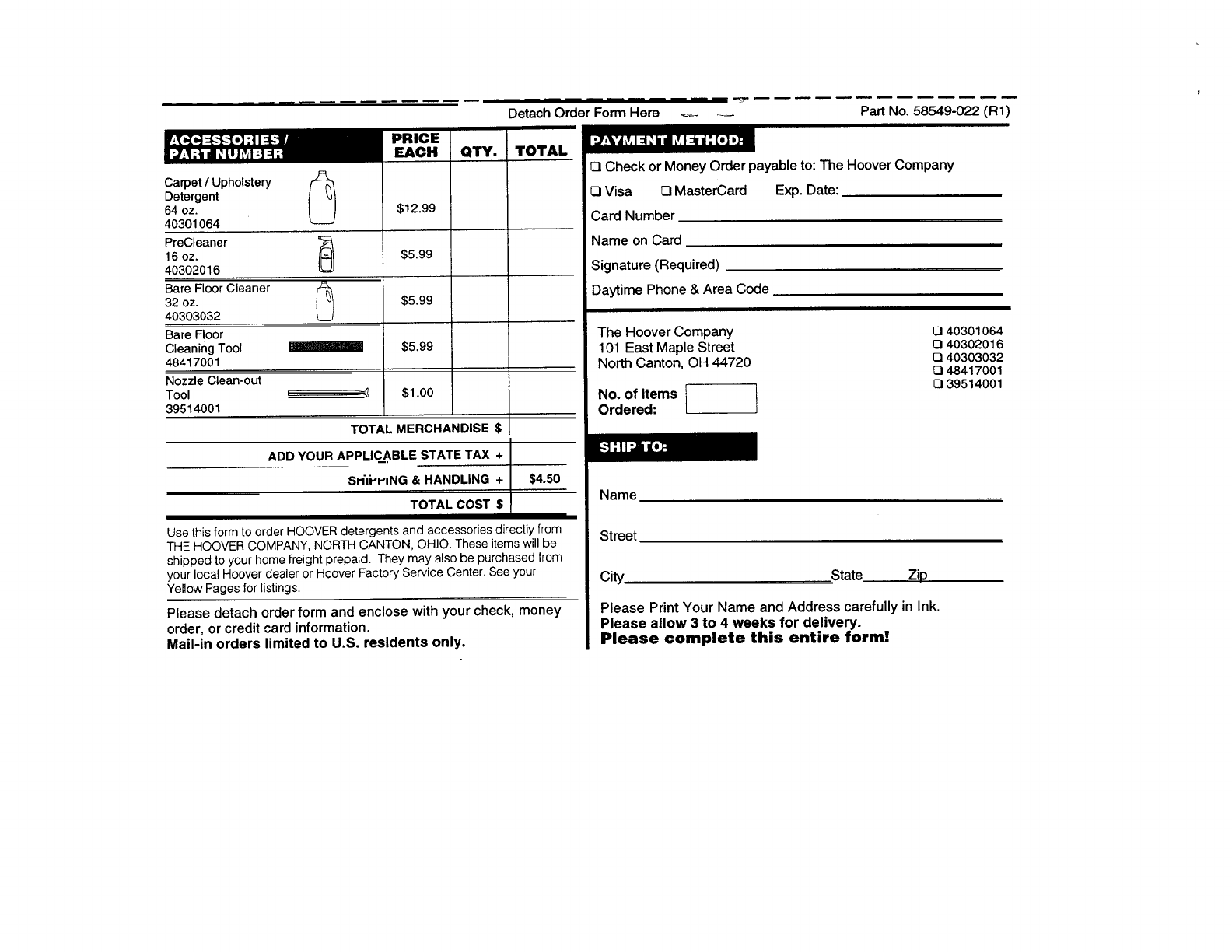 r-i Check or Money Order payable to: The Hoover Company