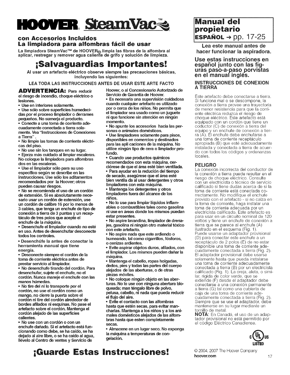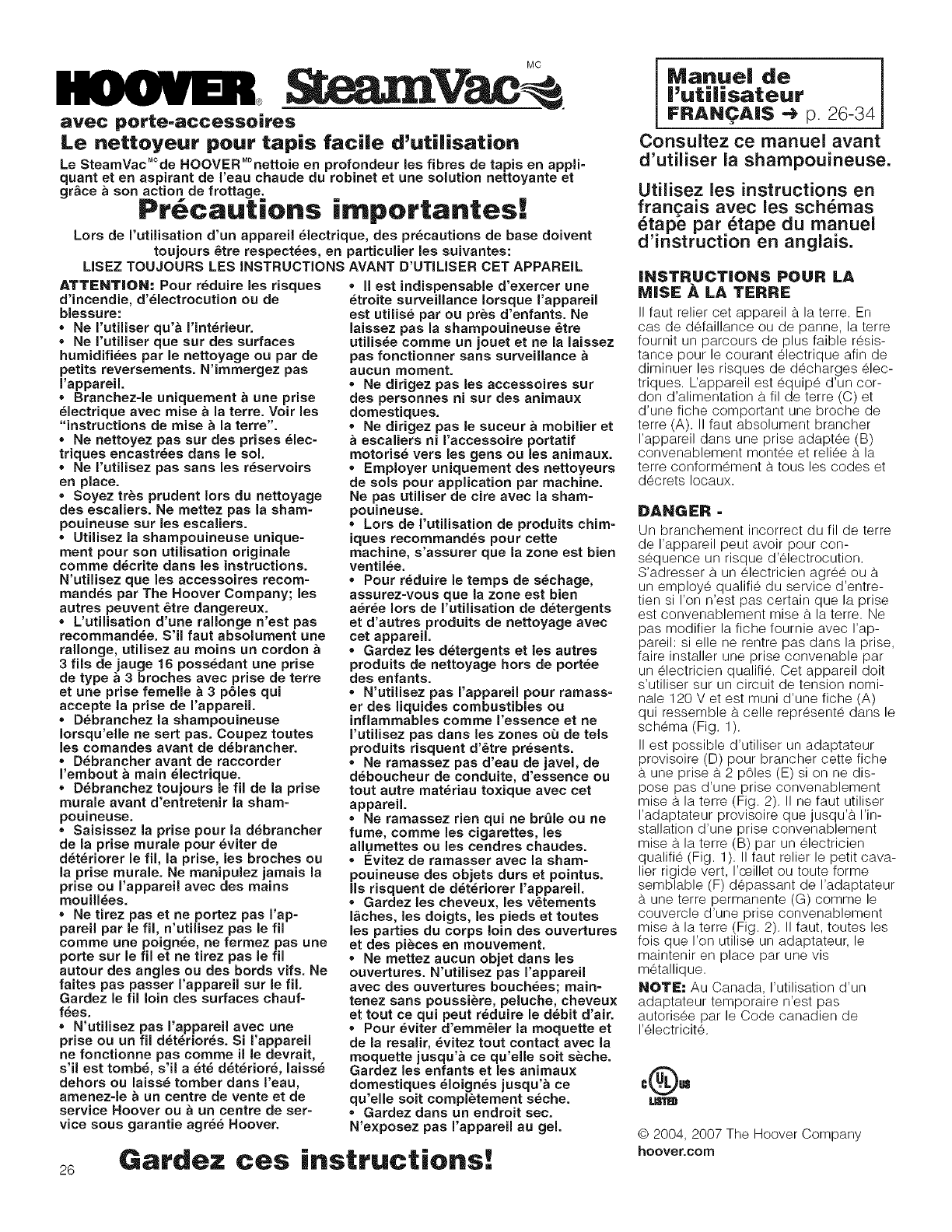 HOOVER Power Steamer Manual L0803708 HOOVER Power Steamer Owner's Manual, HOOVER Power Steamer installation guides