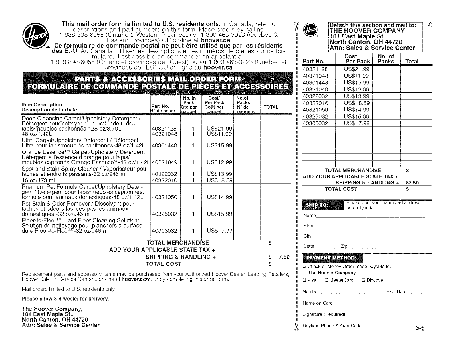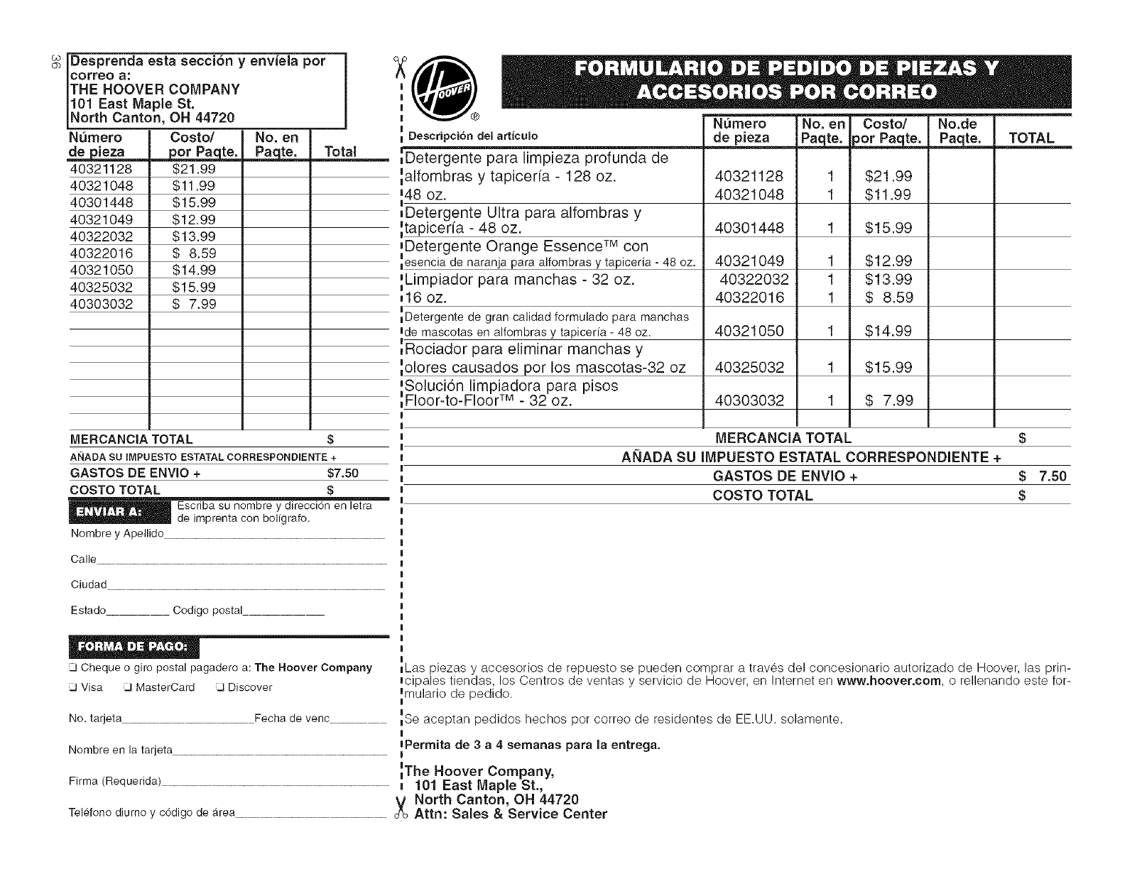 HOOVER y son marcas registradas HOOVER et sont des marques deposees