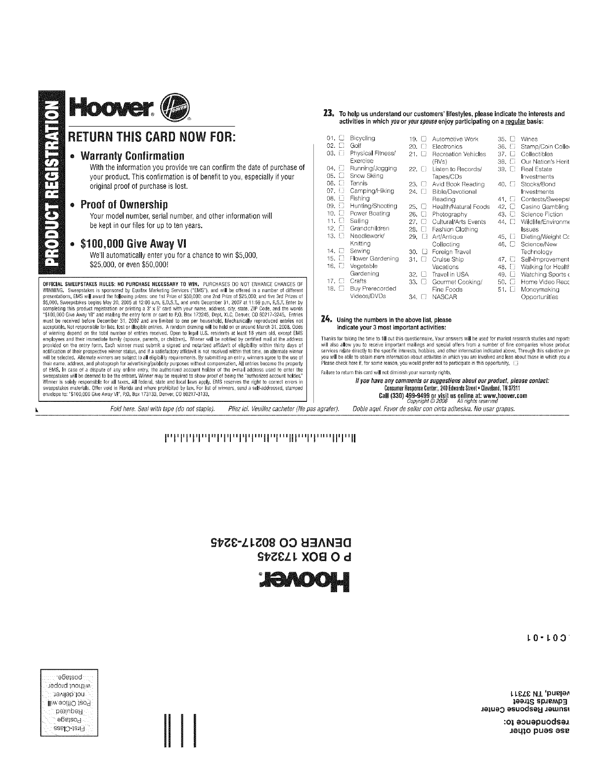 com_leti_ S this _roduct registration Or plinting a 3¸`x 5¸¸card with your name, address, cdy, state, ZIP Code, and the words