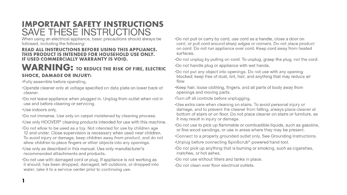 Hoover FH51101 1511216L User Manual CARPET CLEANER Manuals And Guides