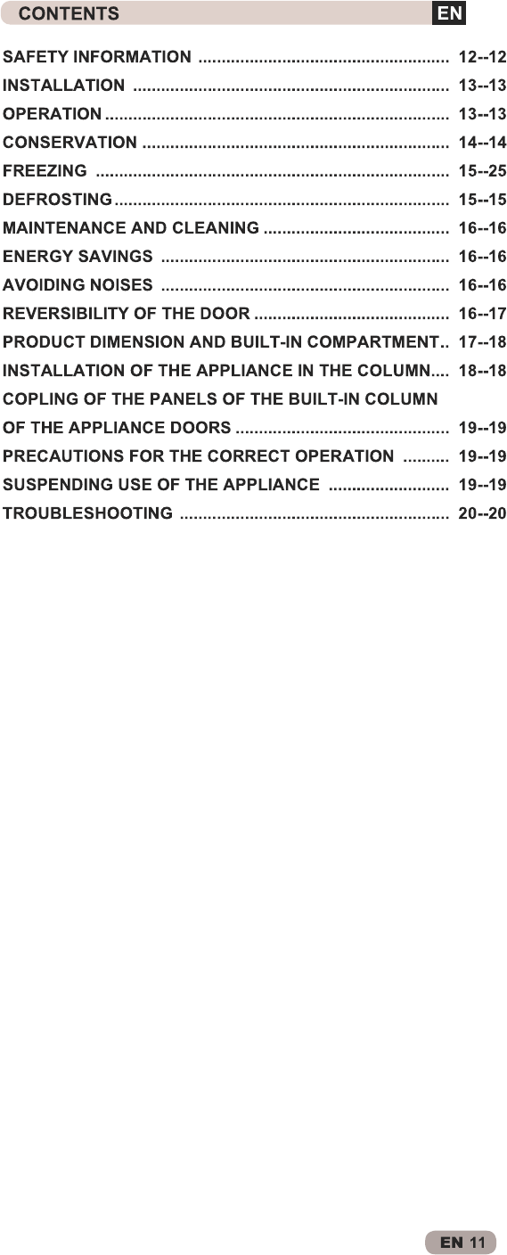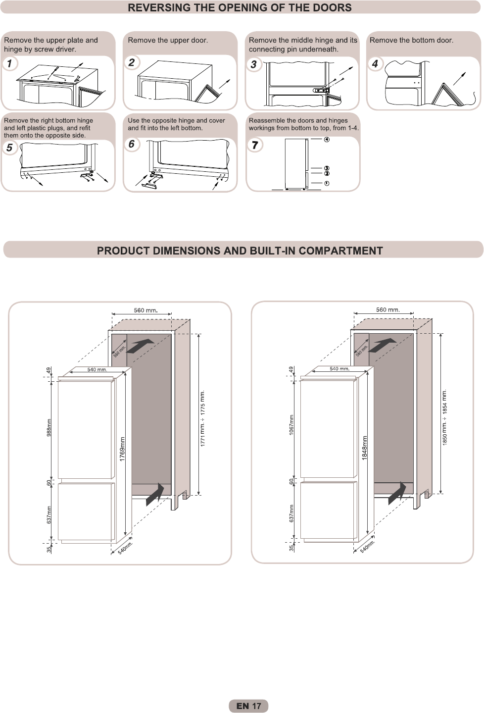 Hoover Integrated Fridge Freezer HBBS 50 UK Instruction Manual Product Code 34900459 Edit