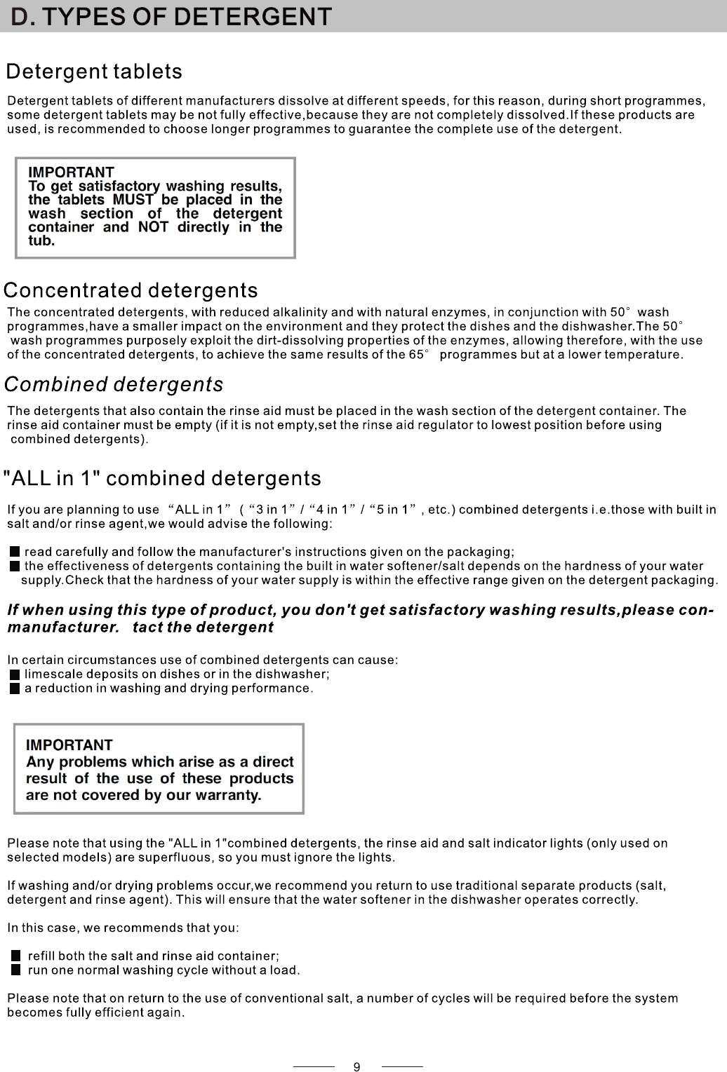 Results may vary greatly according to quantity and pollution of the dishes, water hardness,