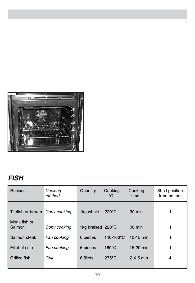 For browning we recommend that you insert the grill onto the fourth level, depending in the