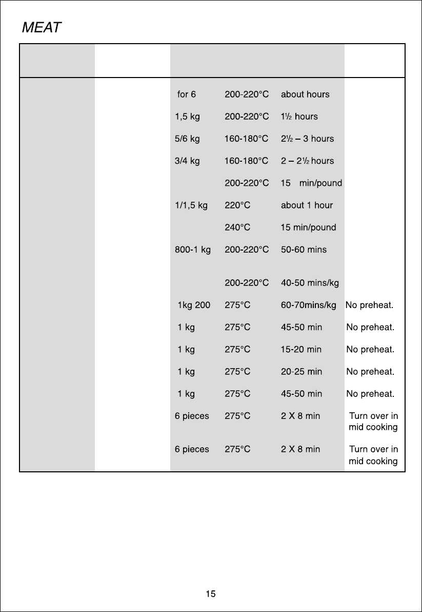 appearance. It is very important to clean the oven each time that it is used. Melted fat is deposited