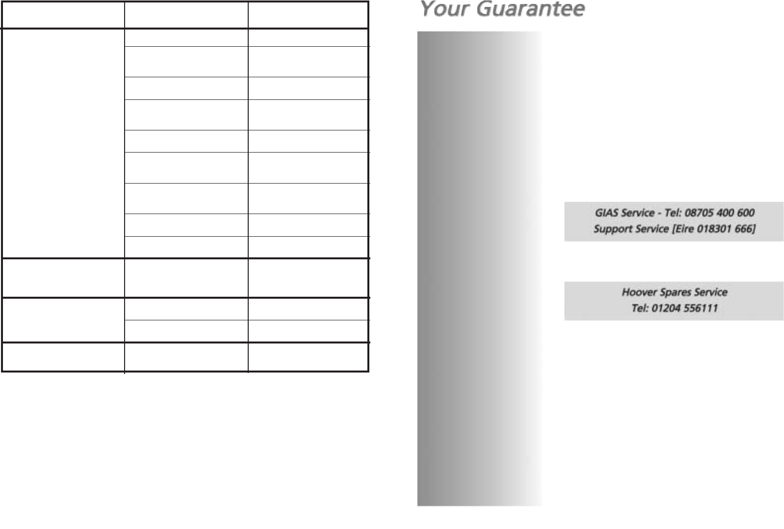 The Hoovercare scheme is not available in Eire.
