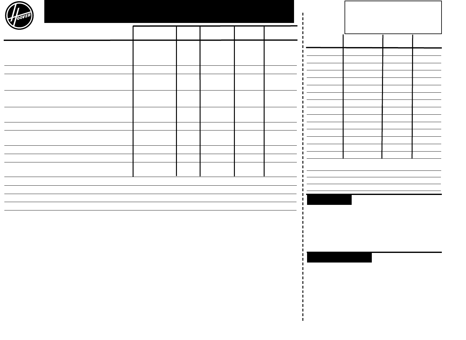 Hoover Sales & Service Centers, on-line at www.hoover.com, or by completing this order form.