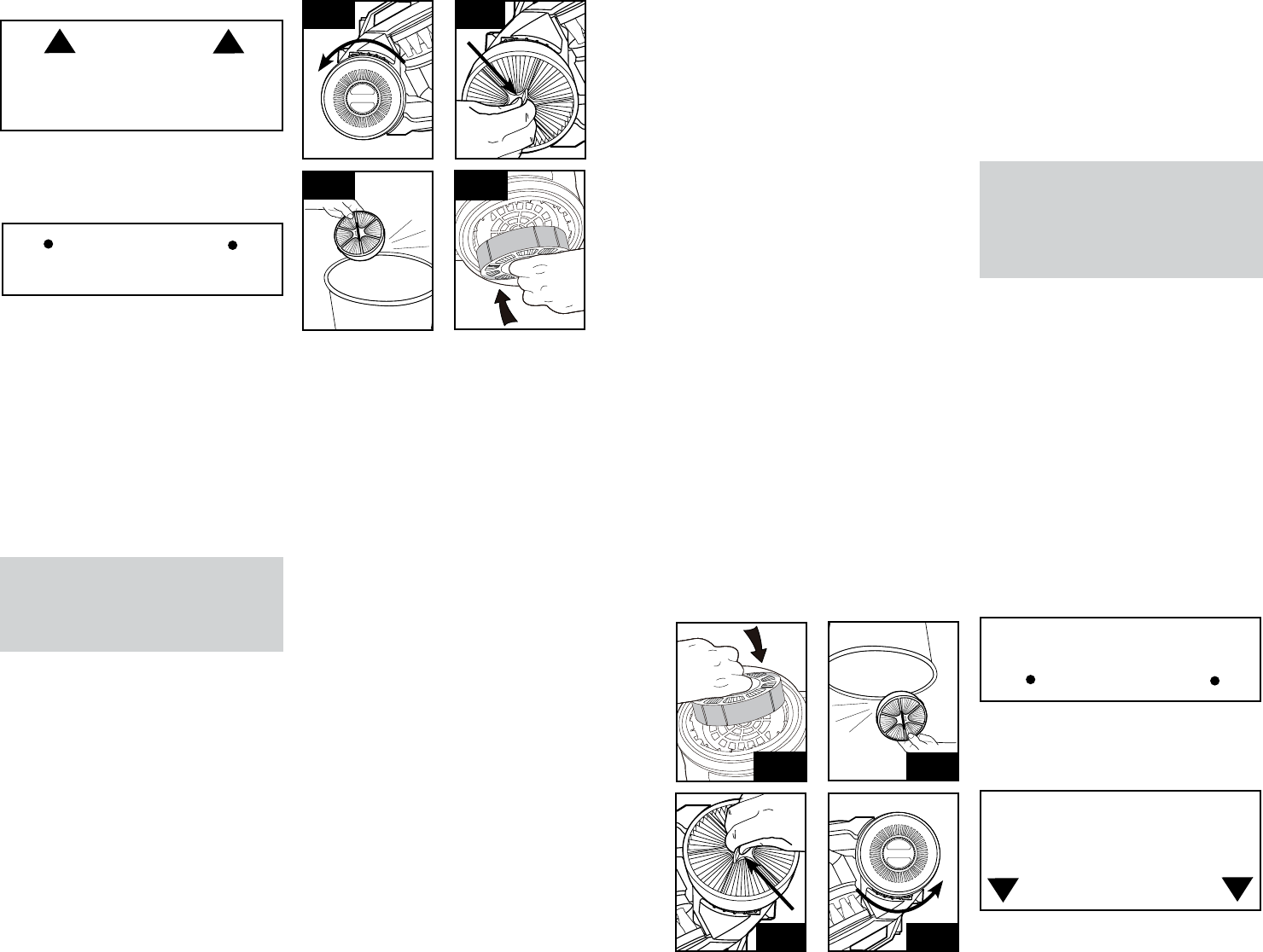 Vuelva a colocar el conjunto del filtro en el contenedor para polvo, y hágalo girar