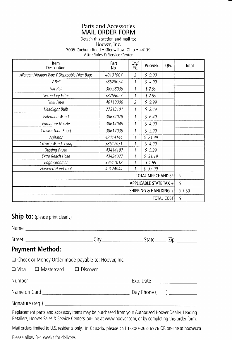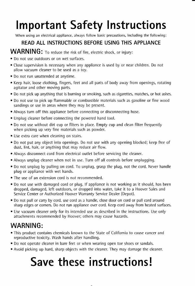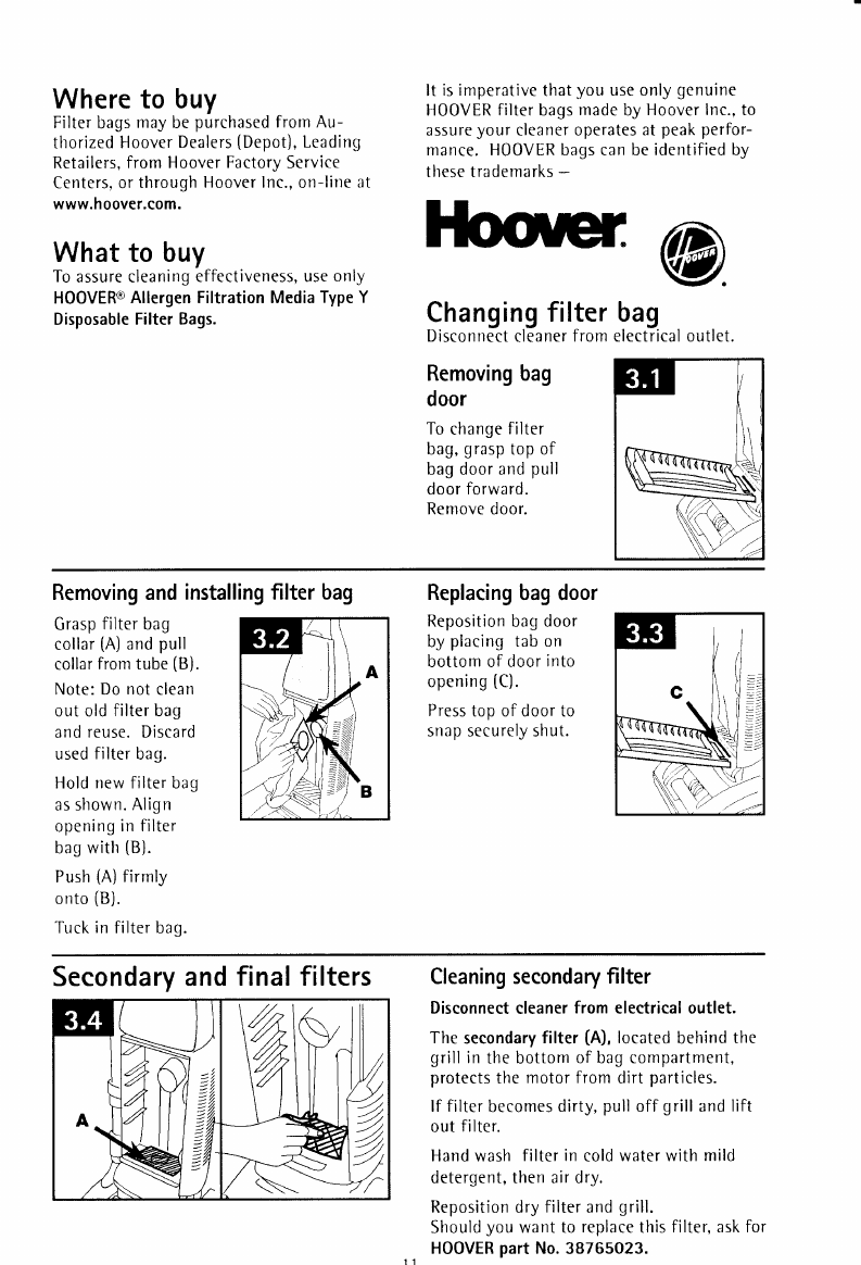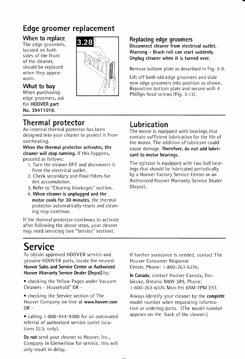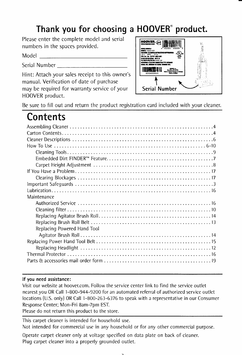 Service Centers, on-line at www.hoover.(om,