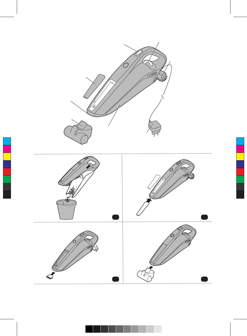 Fit the crevice tool onto the dust cup to clean corners and hard to reach areas. [2]