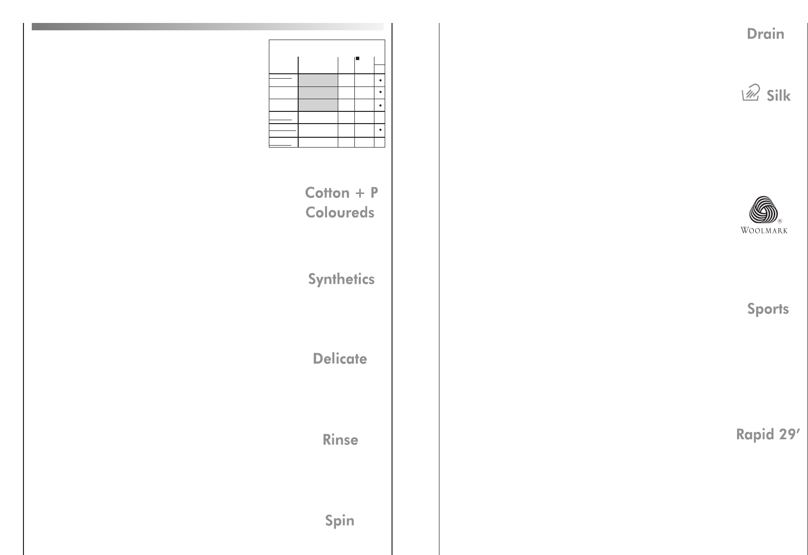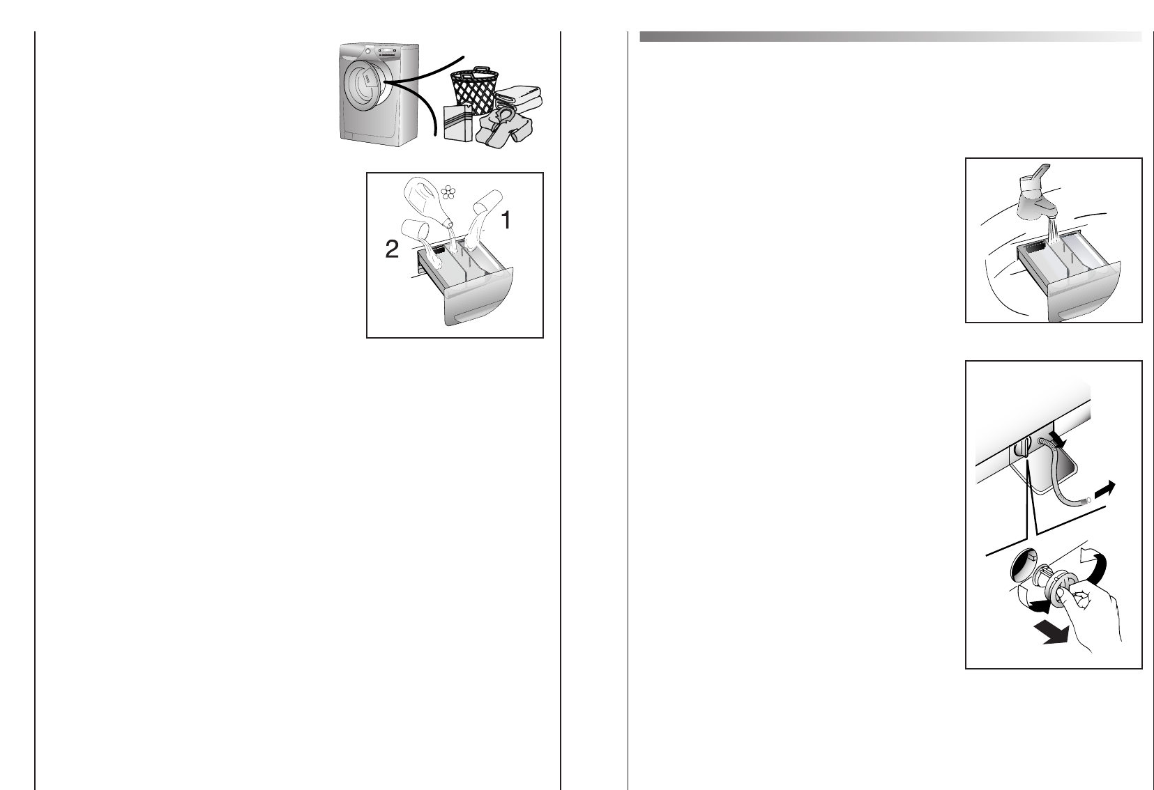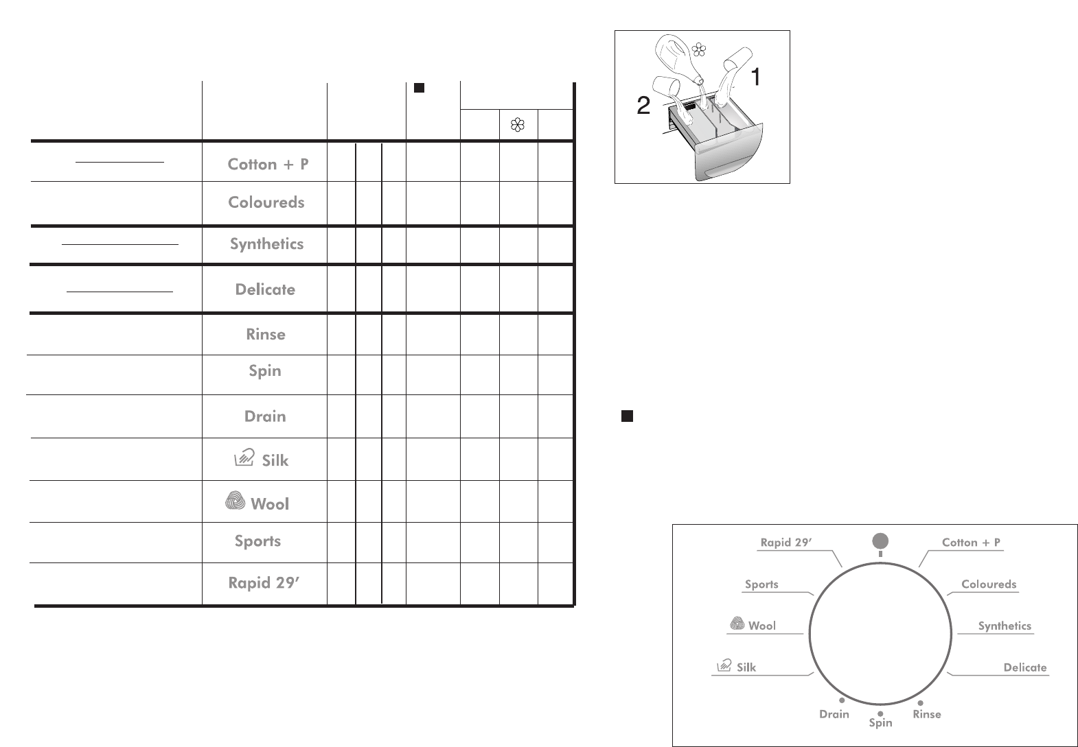 - Put detergent in the compartments as indicated in the programme guide in this instruction