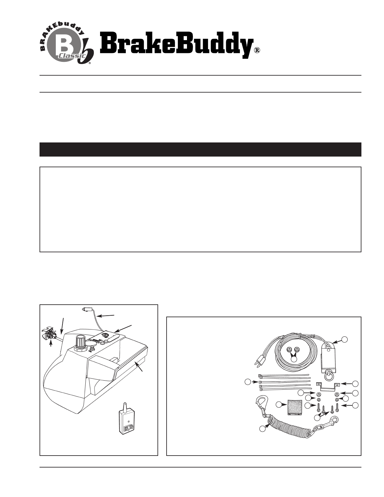 Remove the BrakeBuddy®and components from the shipping carton. The complete system consists of: