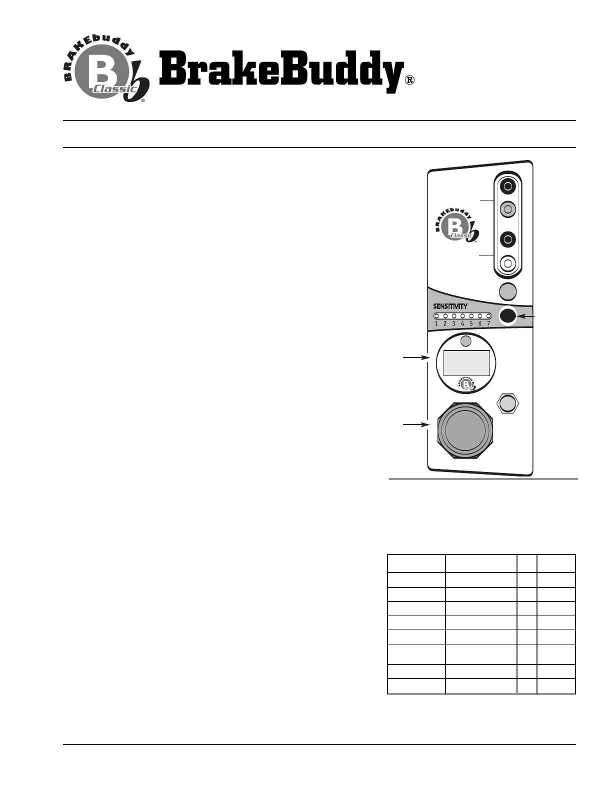 sensitivity setting will warn you by flashing red. The Brakebuddy System