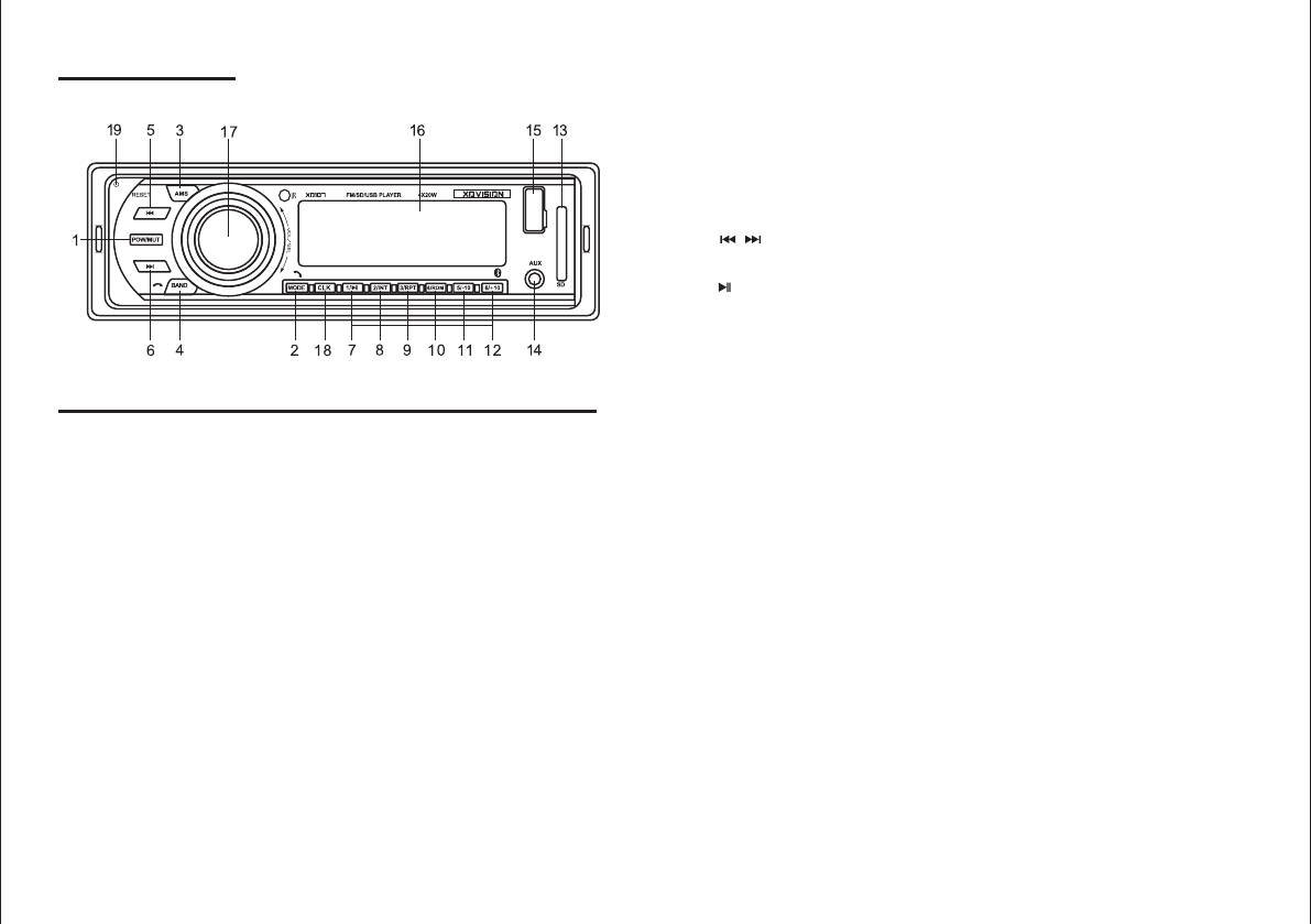 Track Skip Mp3 Player Mode (USB/SD/MMC) / RADIO Search; Press the button during playback
