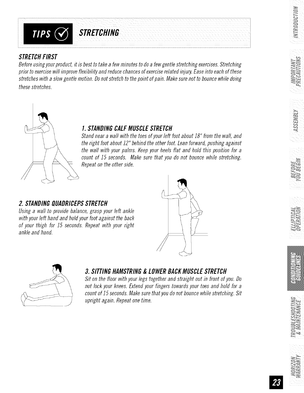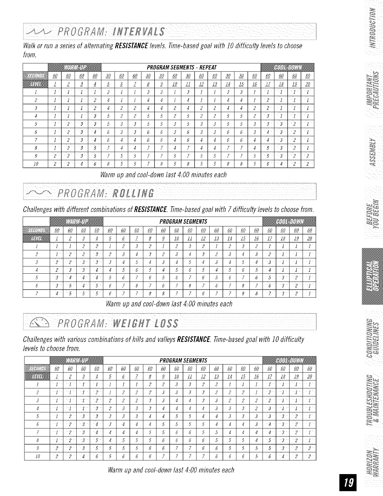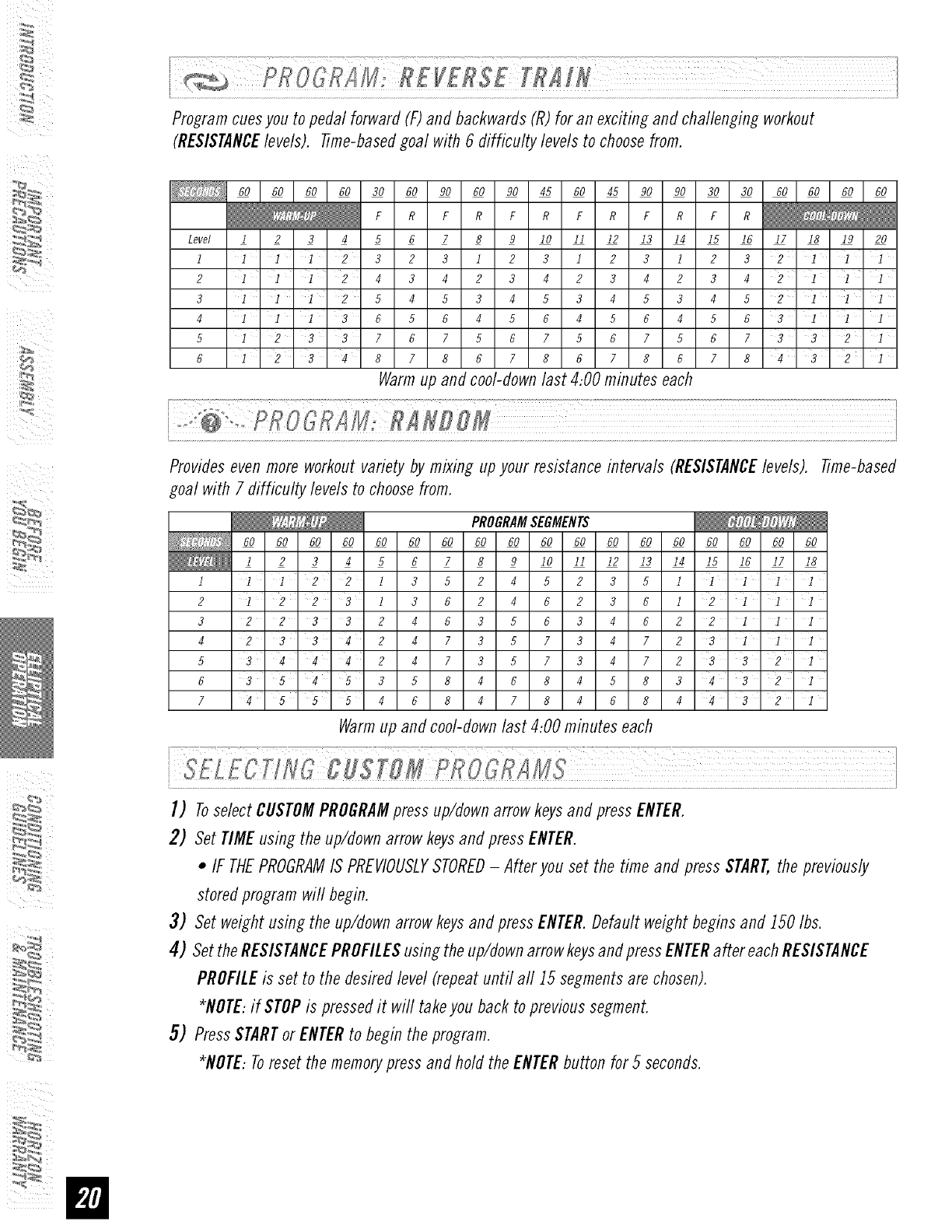 • Maintain a comfortable pace. Do not sprint above 80 rpms on this machine.