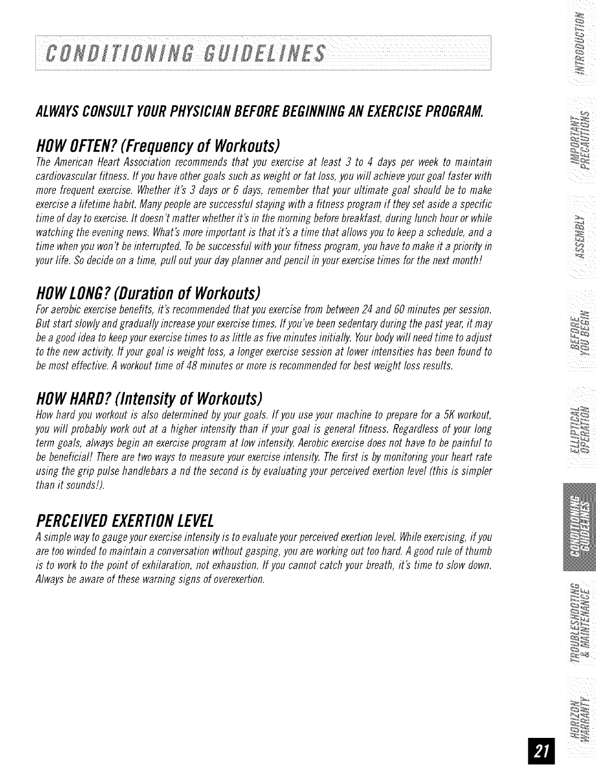 Conditioning Guidelines 21