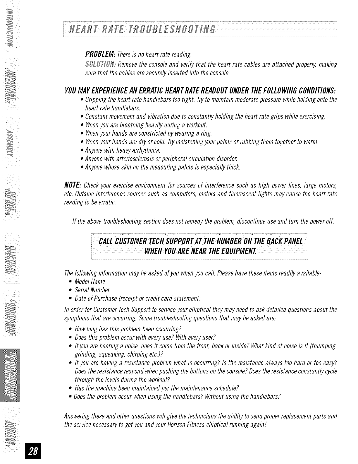 NOTE:Pleaseread the TROUBLESHOOTINGsectionbeforecontacting CustomerTechSupport.