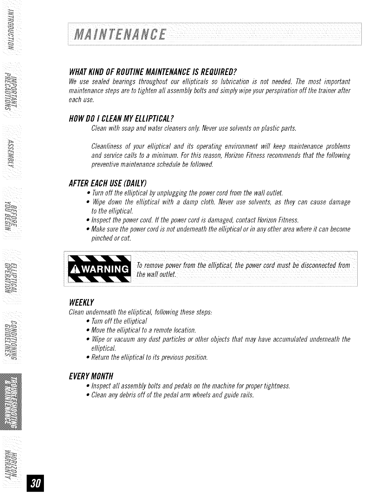 responsibility of the owner to ensure that aft users of this elliptical are adequately informed of aft warnings