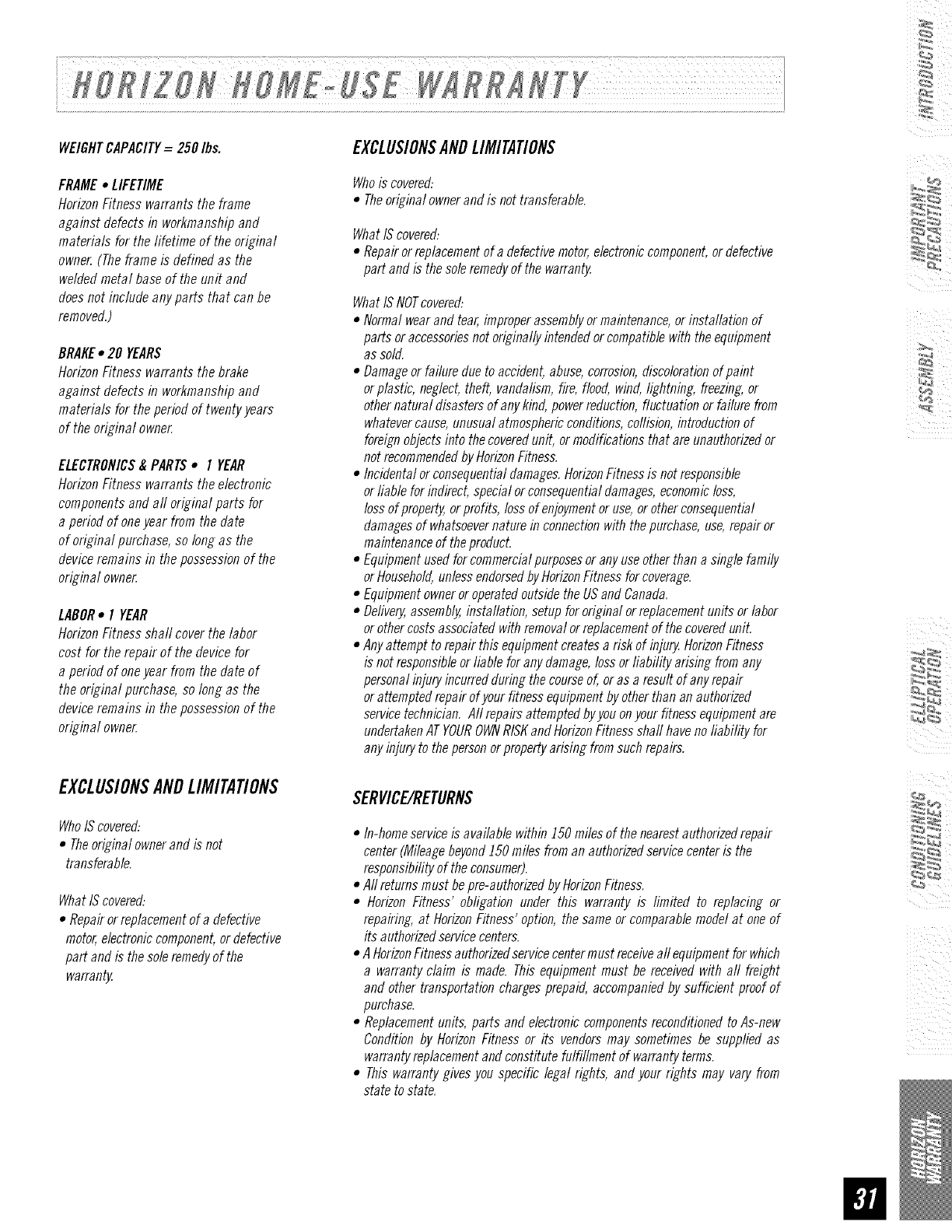 •Horizon Fitness' obligation under this warranty is limited to replacing or