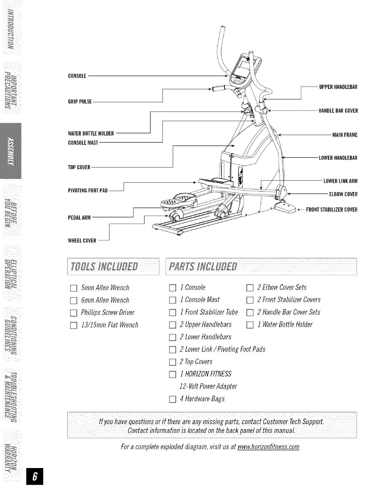 HORIZON Elliptical Manual L0801629 HORIZON Elliptical Owner's Manual, HORIZON Elliptical installation guides