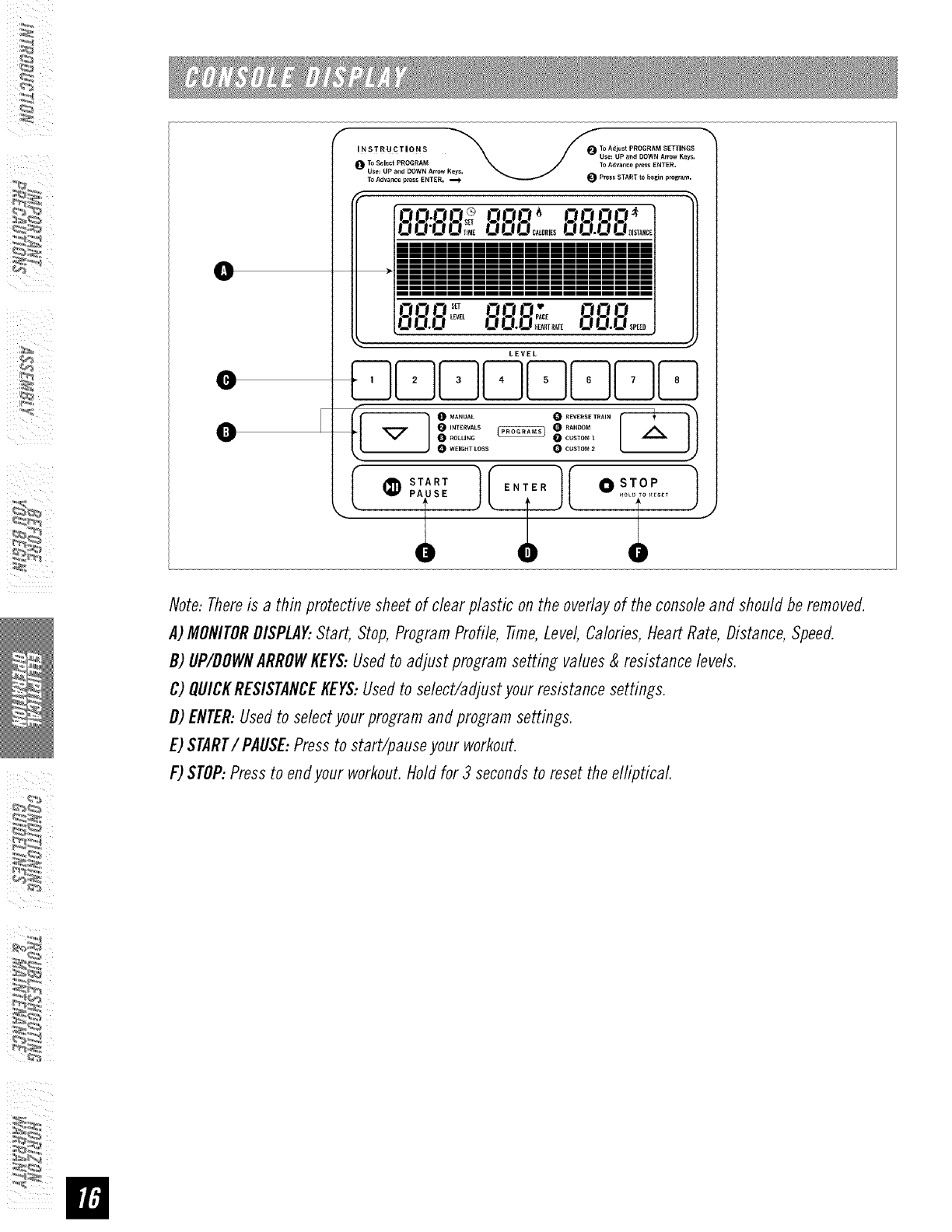 • This elliptical is intended for in-home use only. Do not use this efliptical in any commercial, rental, school