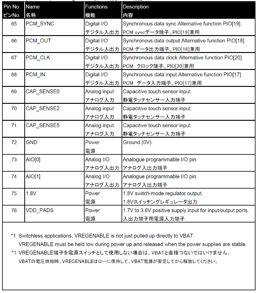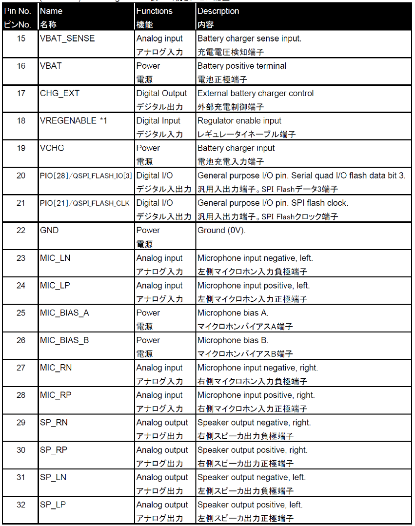Table 1 : Pin assignments