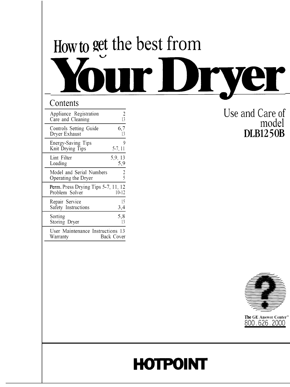 User Manual: Hotpoint DLB1250BCL DLB1250BCL HOTPOINT DRYER - Manuals and Guides View the owners manual for your HOTPOINT DRYER #DLB1250BCL. Home:Laundry & Garment Care Parts:Hotpoint Parts:Hotpoint DRYER Manual