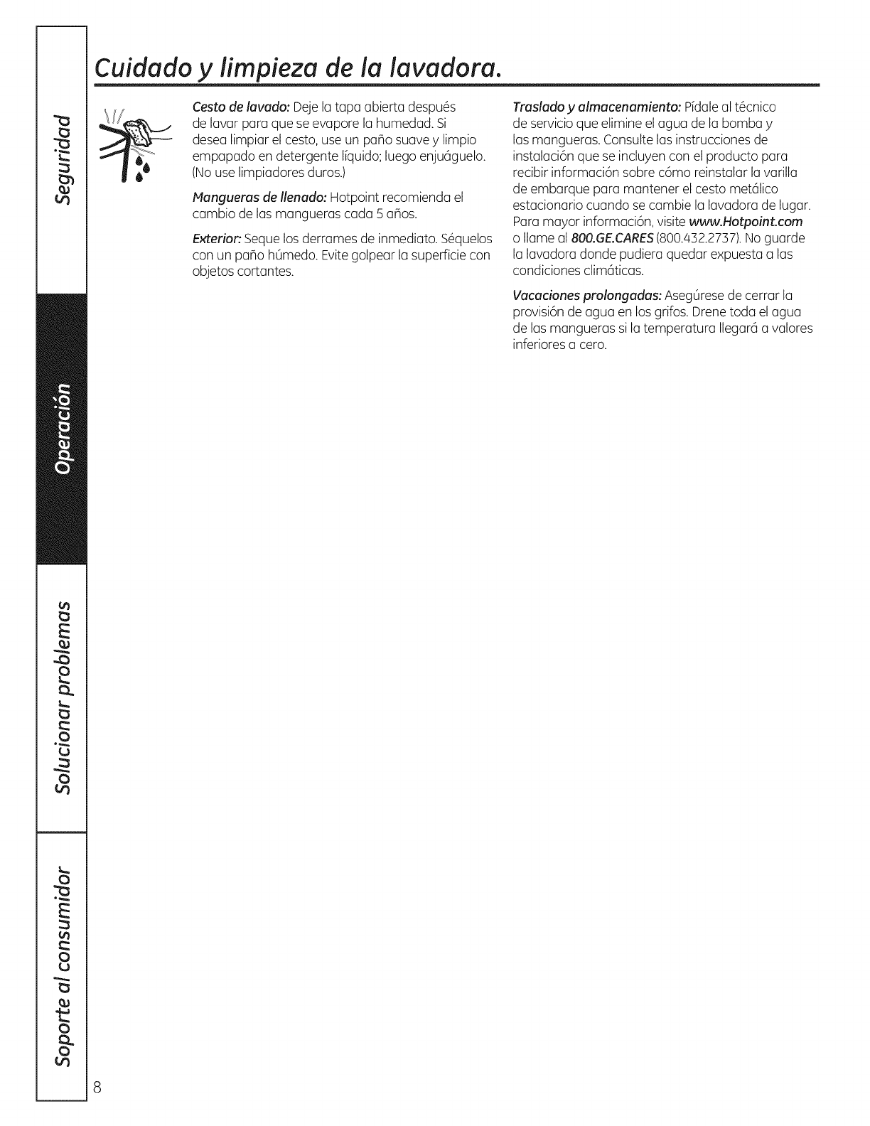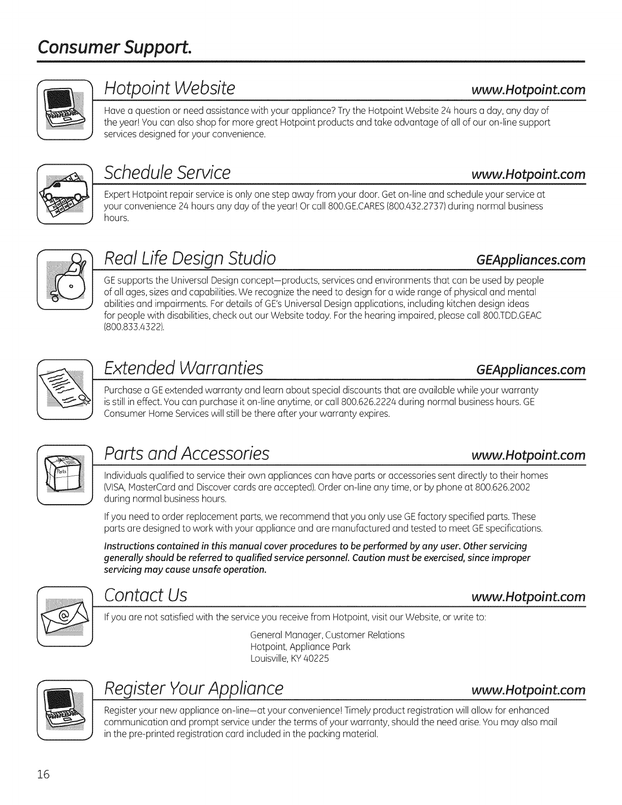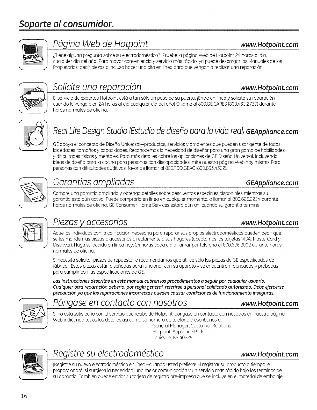 visite la pdgina www.Hotpoint.com o llama o1800.GE.CARES