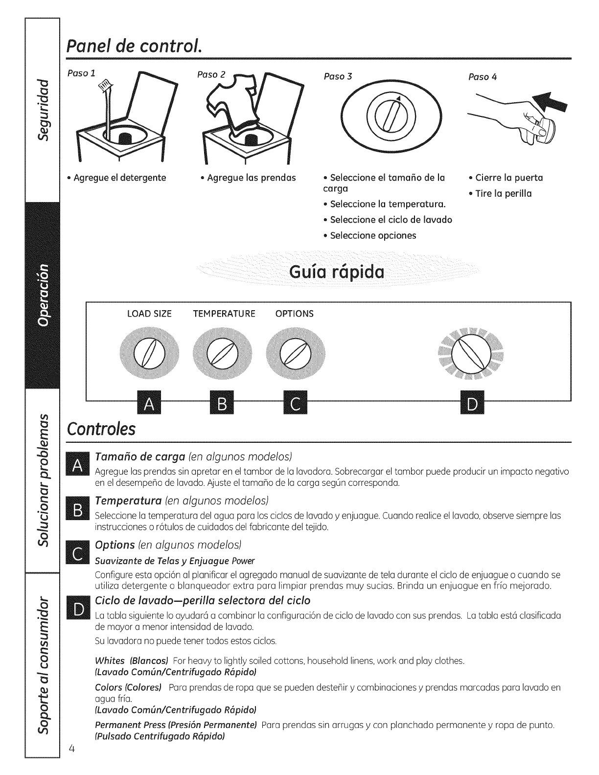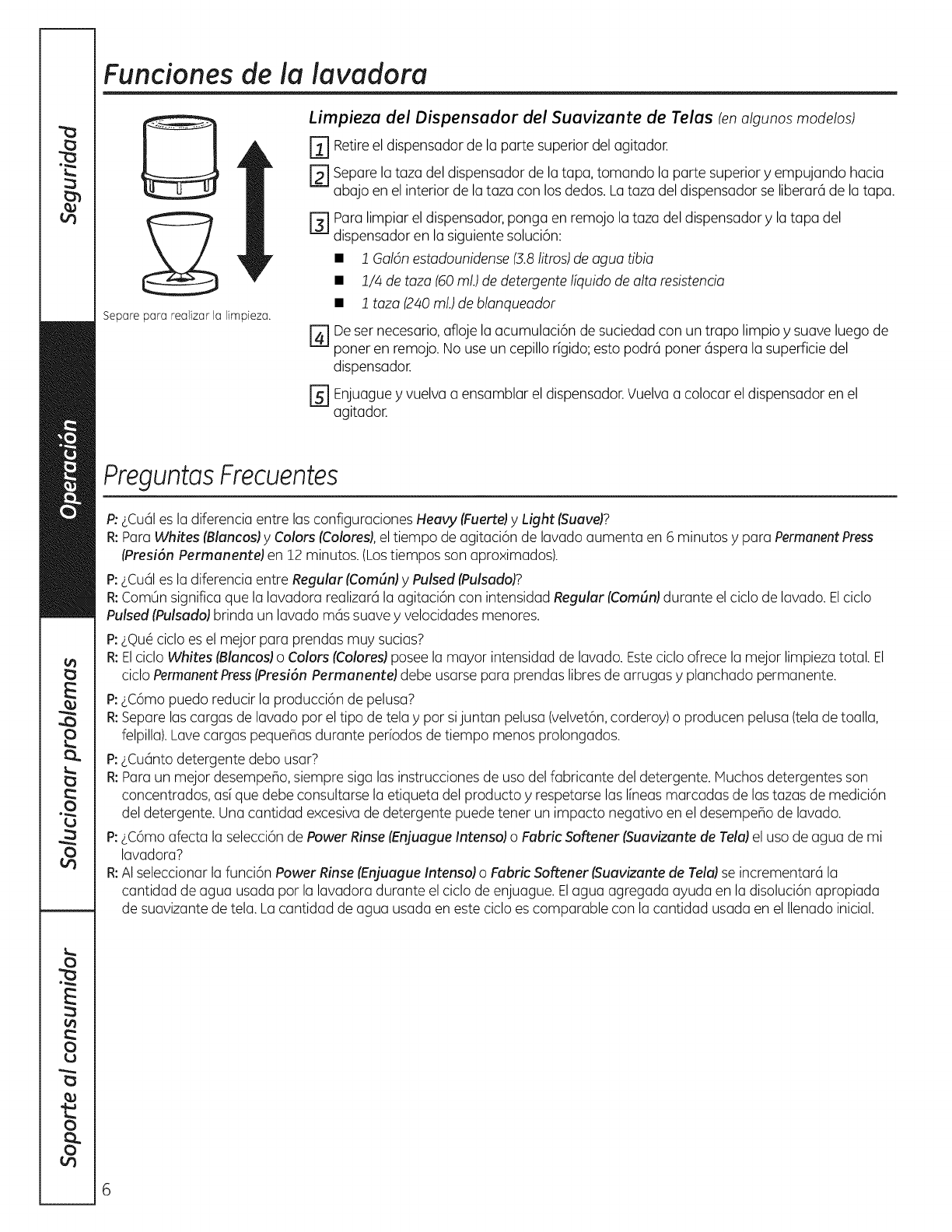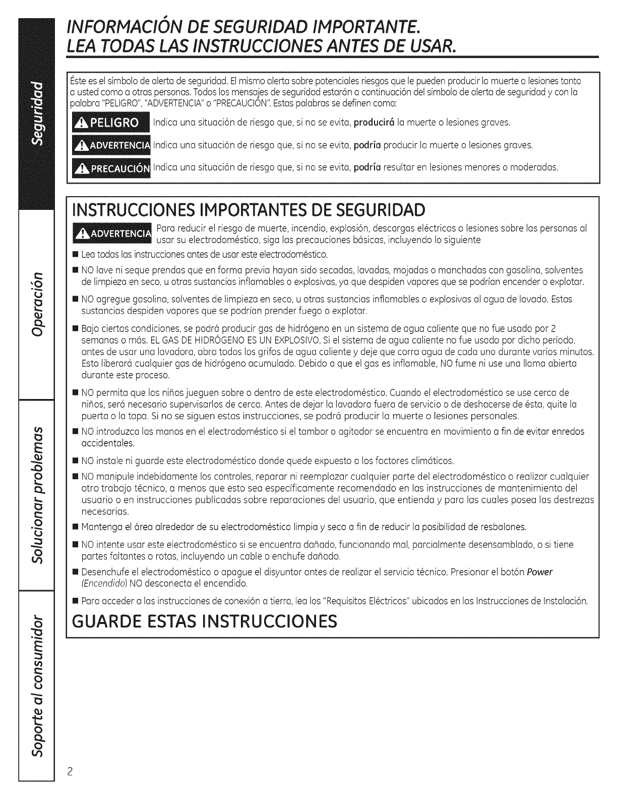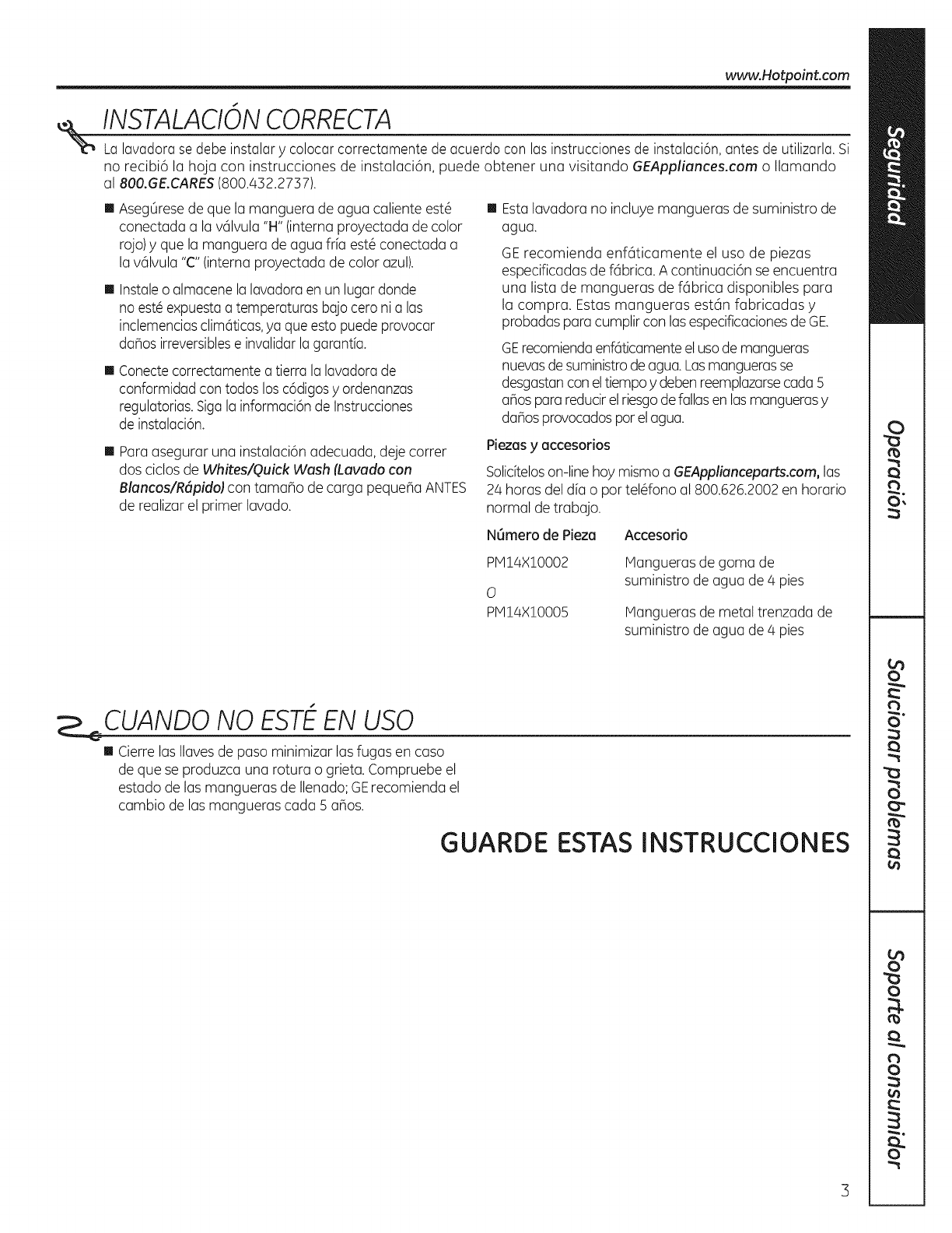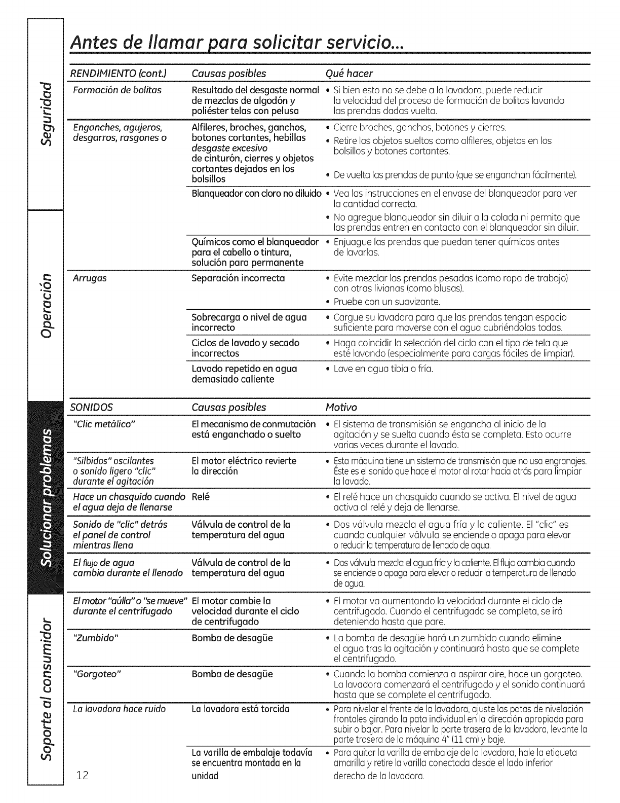Sinecesitasolicitar piezasde repuesto, le recomendamos qua utilice s61olas piezas de GEespecificadasde fdbrica. Estaspiezas