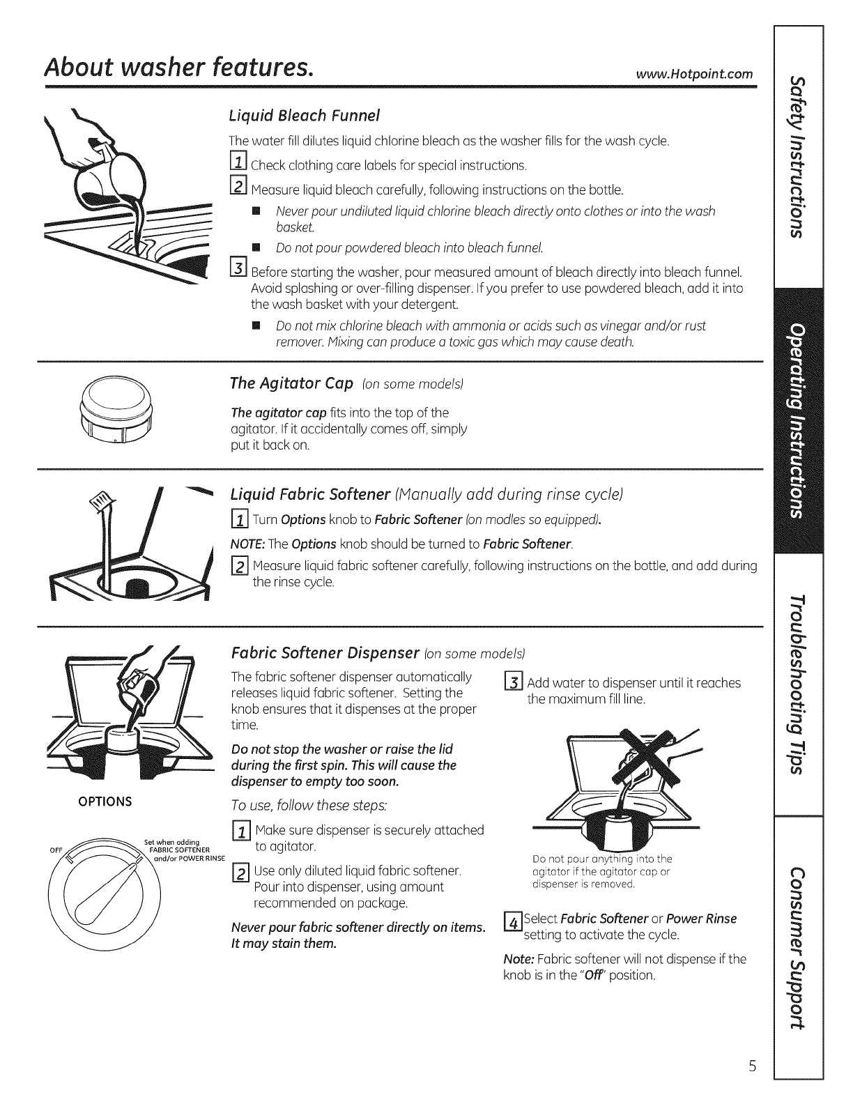 [] DO NOTreach into the appliance if the tub or agitator is moving to prevent accidental entanglement.