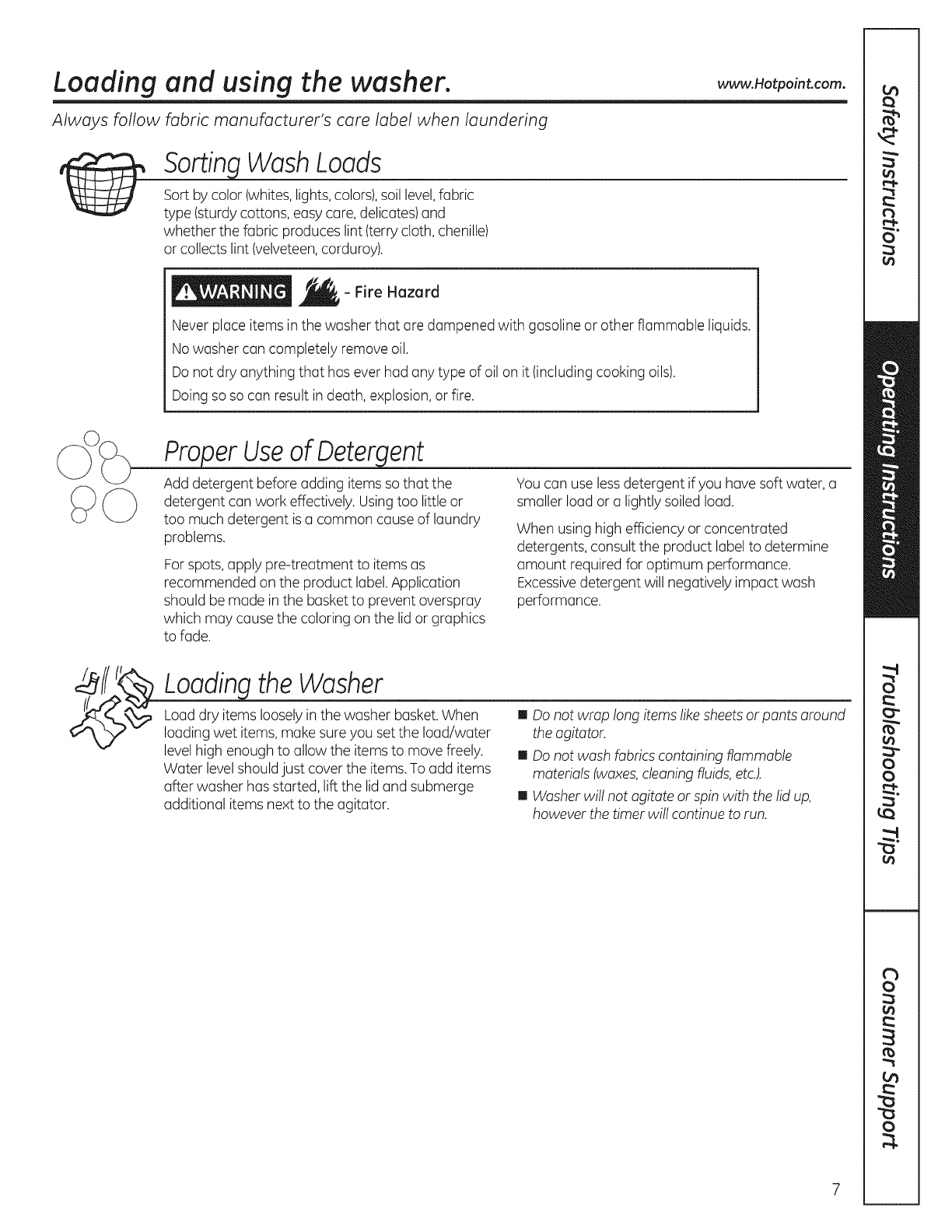 [] DO NOTadd gasoline, dry-cleaning solvents, or other flammable or explosive substances to the wash water. These