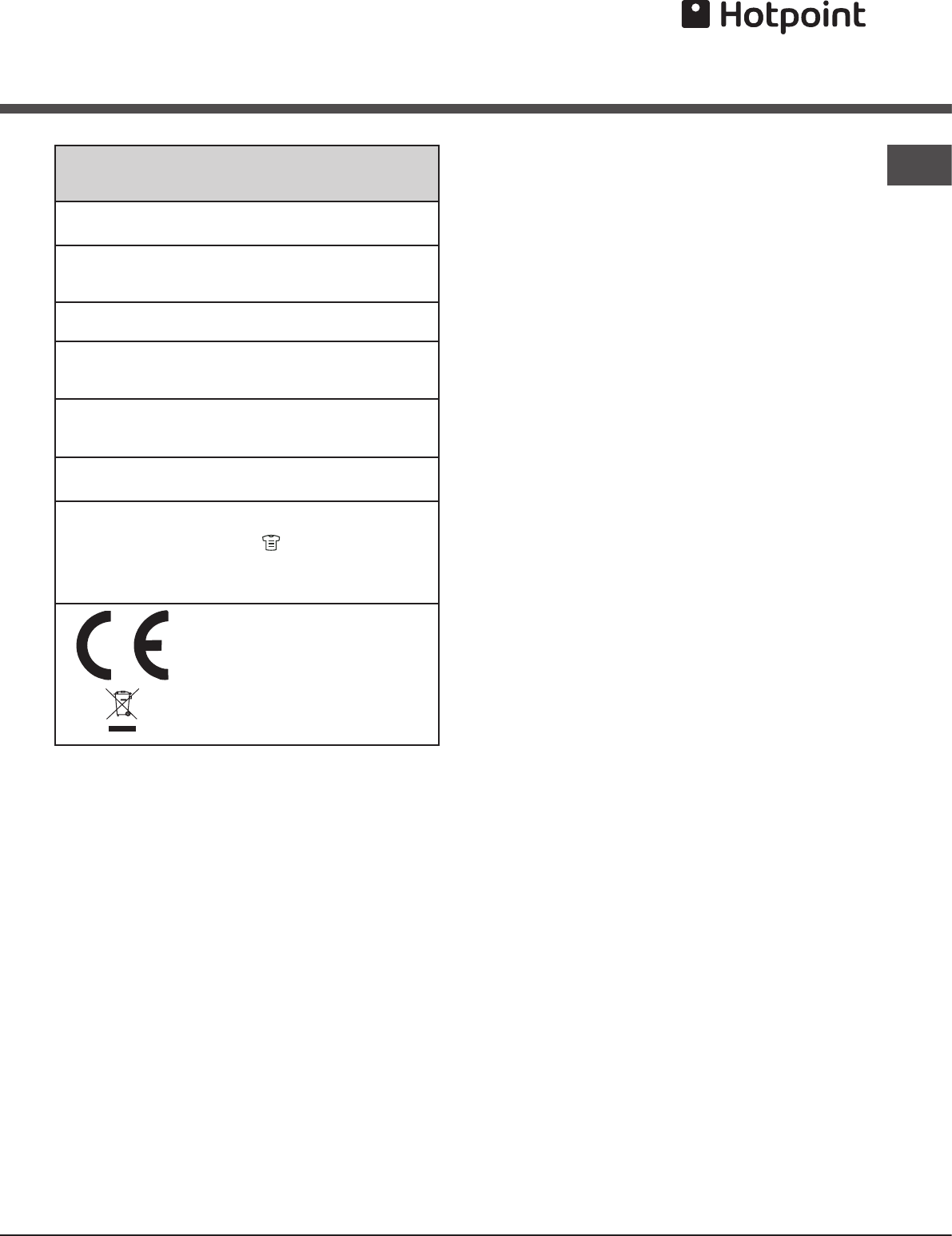 As part of Hotpoint’s continued commitment to helping the environment, Hotpoint reserves the right