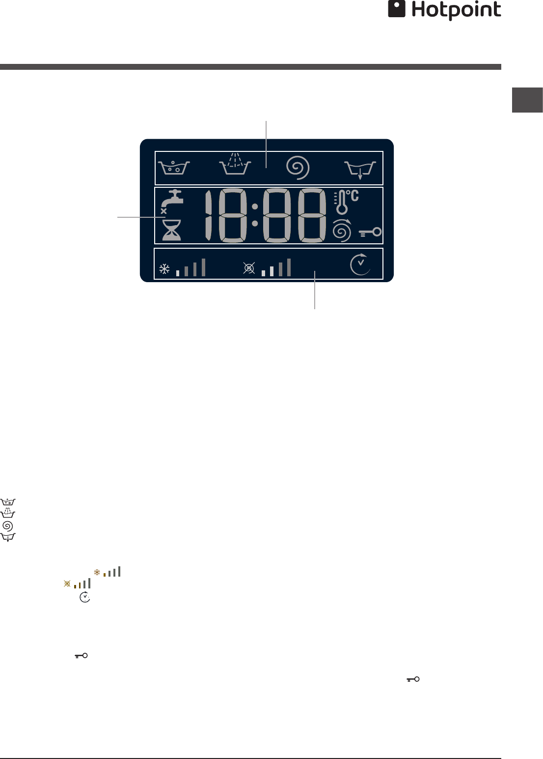 cycle (eg: Water Levels, Temperatures, Out of Balance loads, Wash time/progress).
