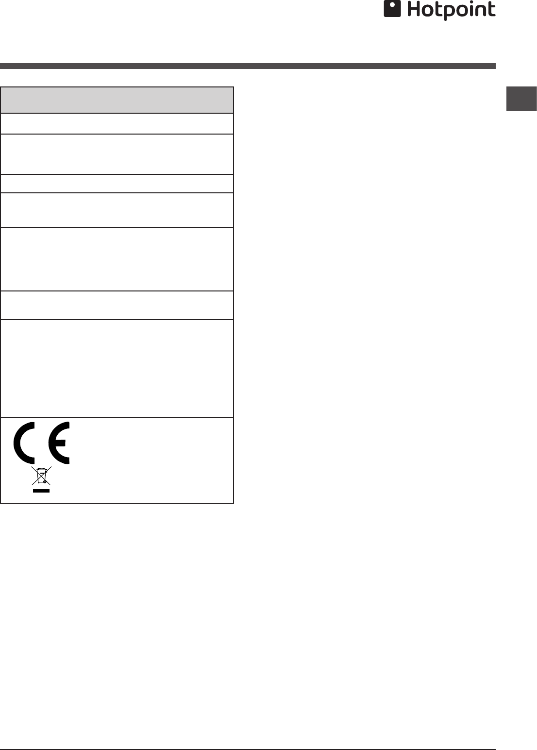 As part of Hotpoint’s continued commitment to helping the environment, Hotpoint reserves the right to use