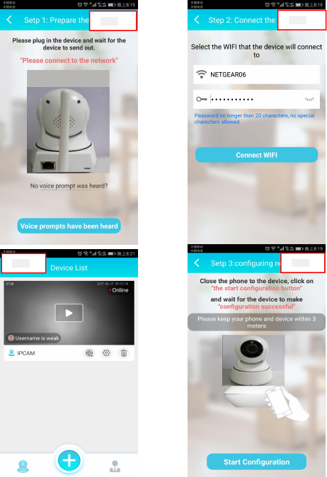 A. Power On the IP camera, the device will start from the voice prompt, "welcome to use, please