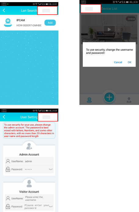Note: A powerful username and password is strongly recommended by us to protect your privacy.