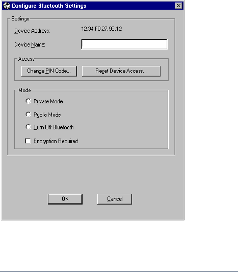 Configure Bluetooth Settings dialog