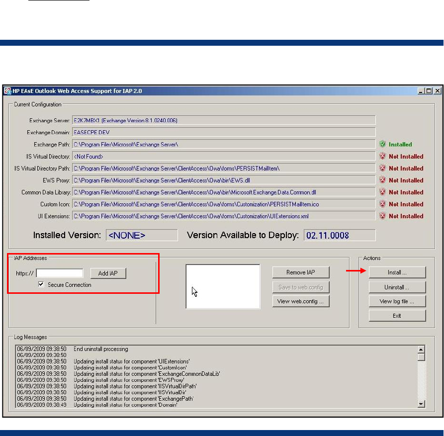 5. Enter the “IAP Address” (VIP in BlackBoxConfig.bct) and select “Install” to install OWA