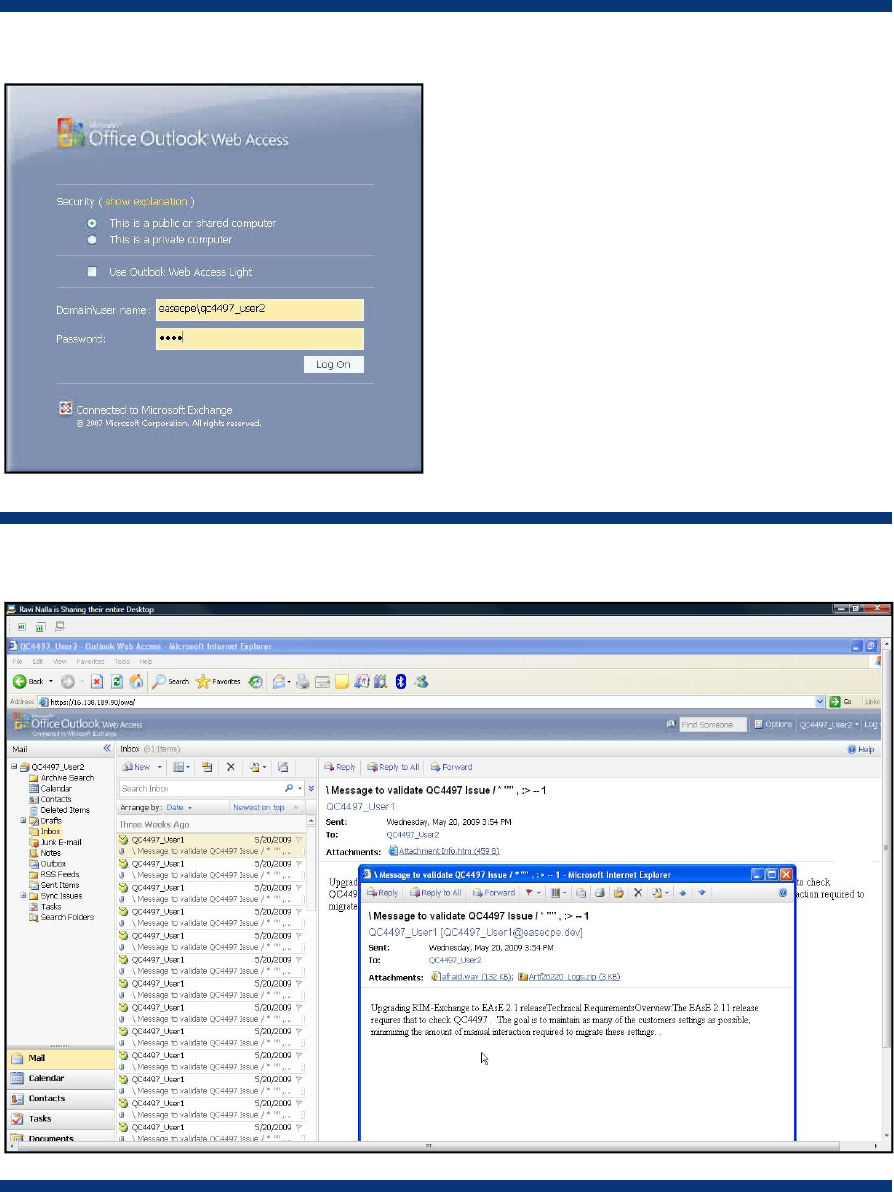 Users may then log into the OWA client via Internet Explorer and connect to OWA 2007 and the