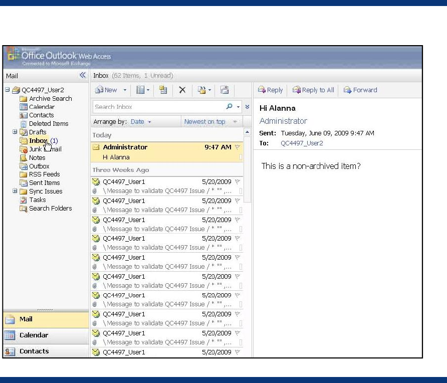 Exchange mailbox user. Verify that all EAsE-archived messages are marked with tombstones in the