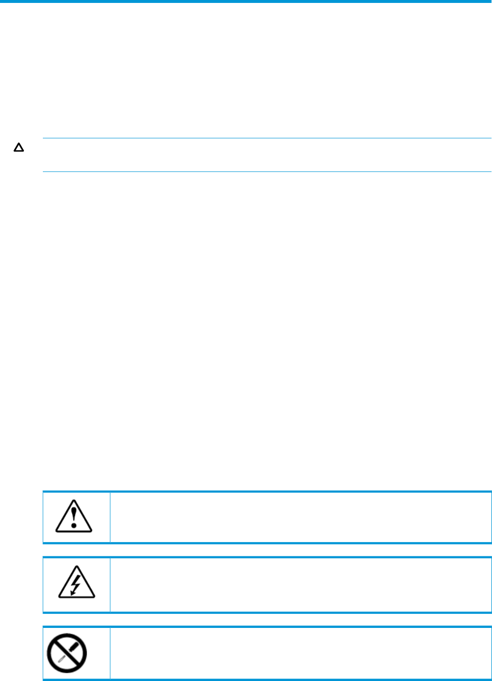 This document contains safety precautions, environmental notices, and regulatory compliance notices for HP Enterprise products.
