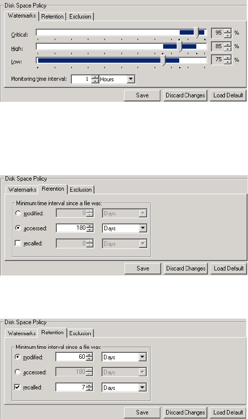 watermarks, setting for disk space use 48
