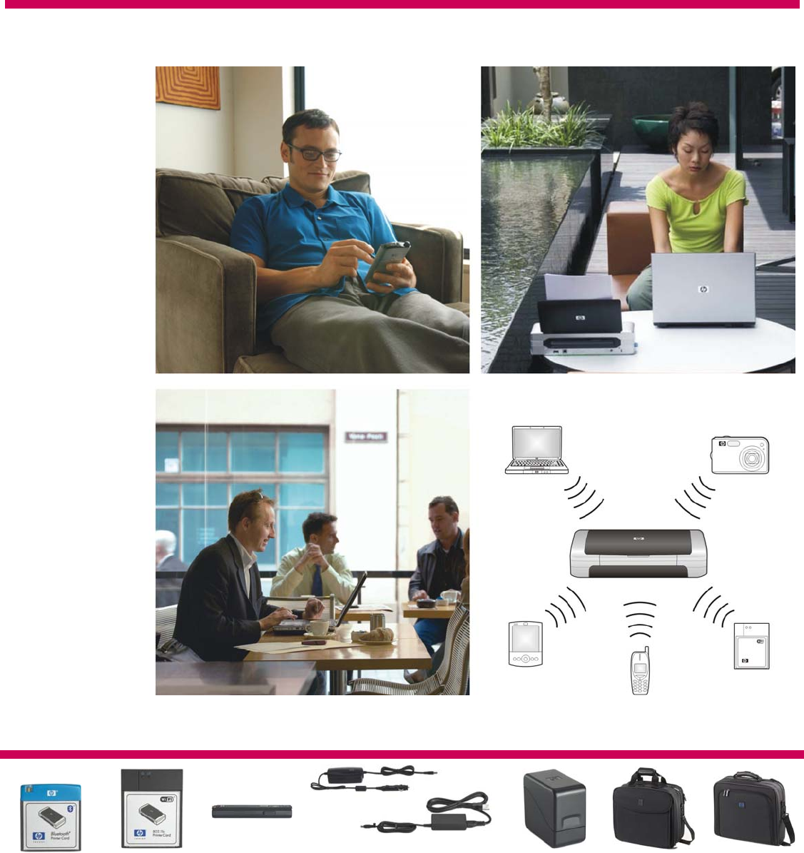 Battery Optional Type: HP lithium-ion battery; life: up to 450 pages per charge; capability: automatic recharge with printer’s built-in