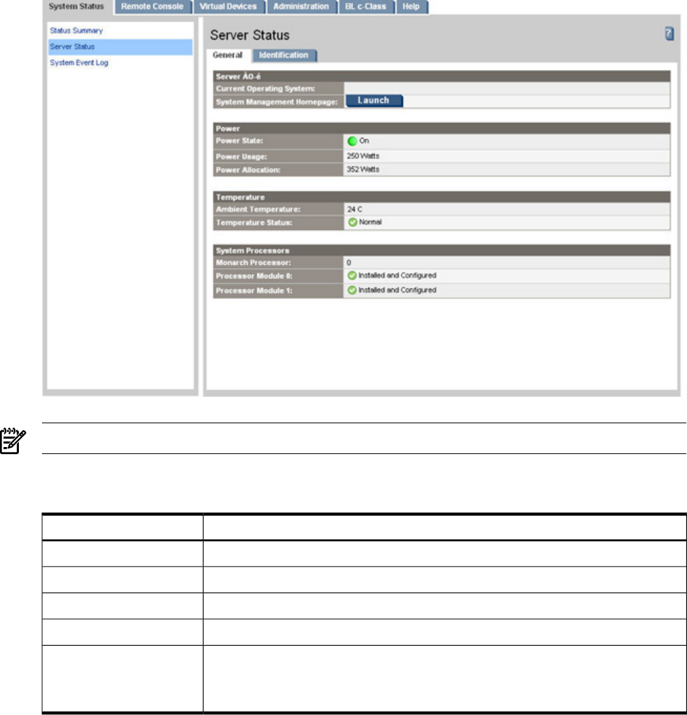 server status general, 84