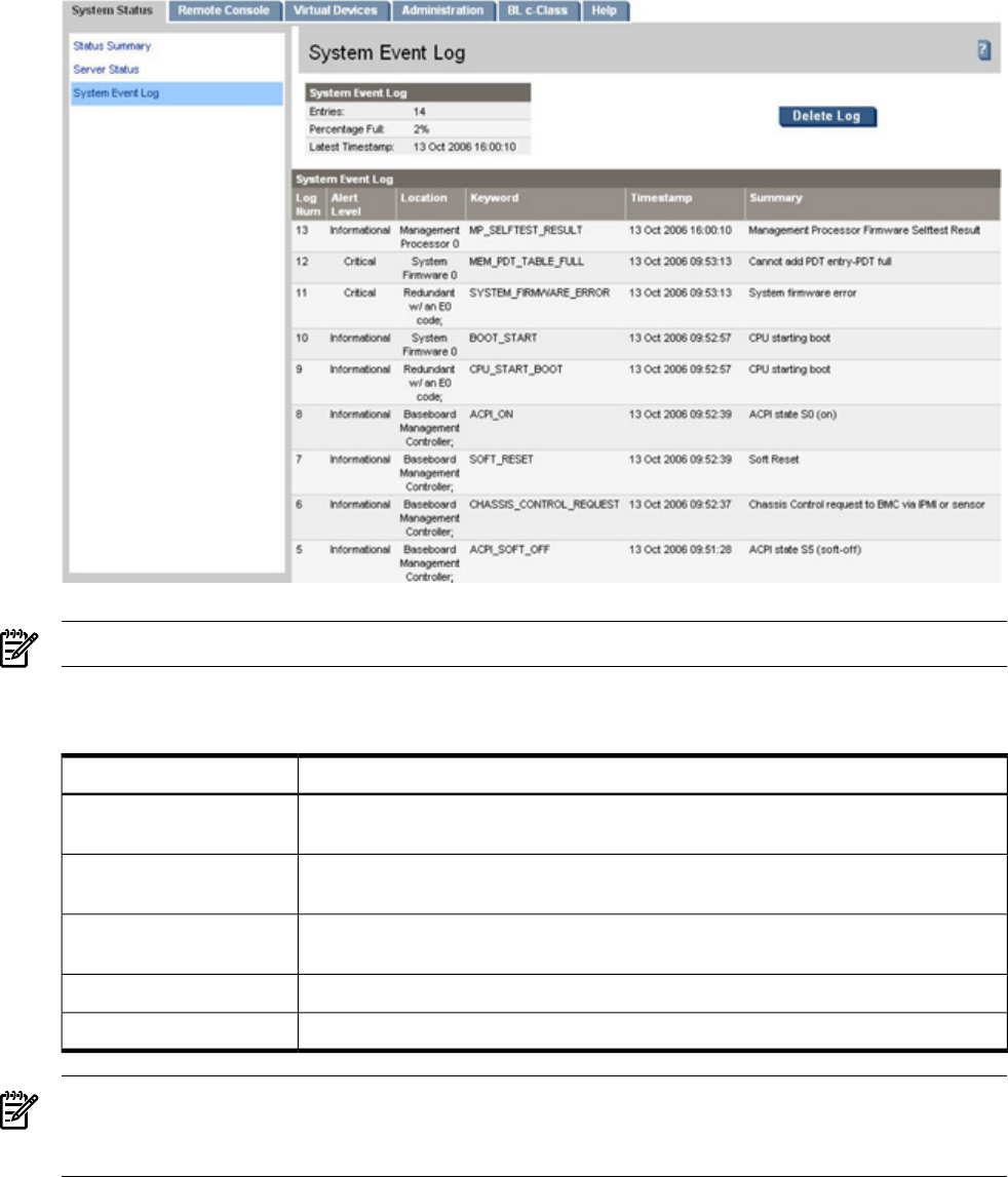 system event log