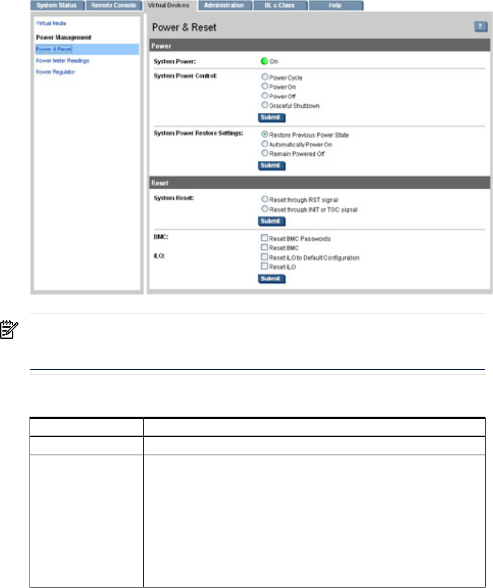 - System Reset Power Status and Power Control
