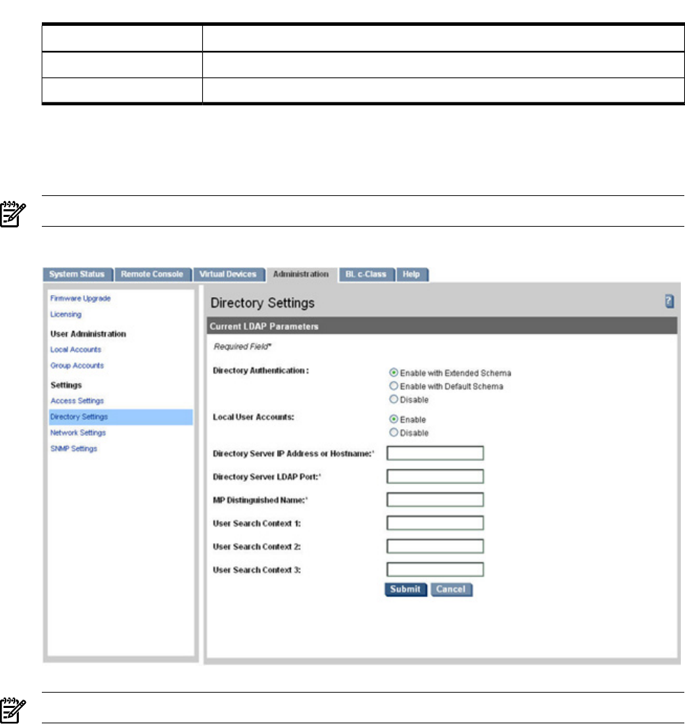 - LDAP: LDAP directory settings