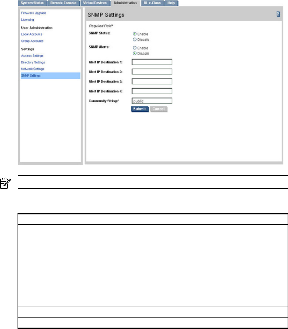 SNMP settings, 119